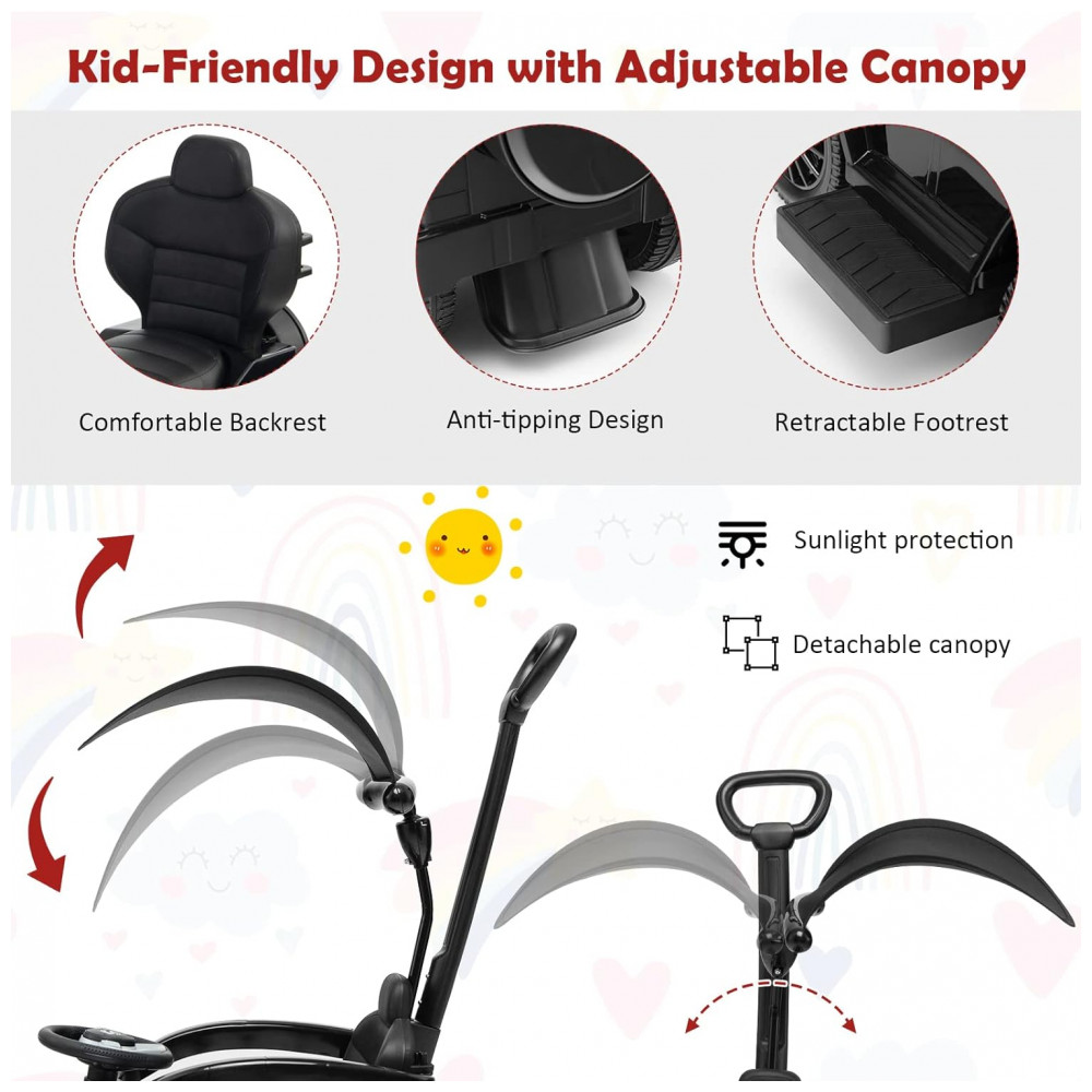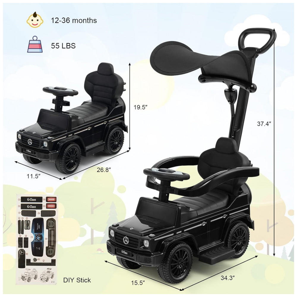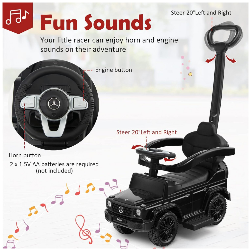 Carrinho de Passeio Infantil 3 em 1 com Alça Buzina e Compartimento de Baixo do Assento para Crianças de 1 a 3 Anos Costzon Mercedes Benz Preto