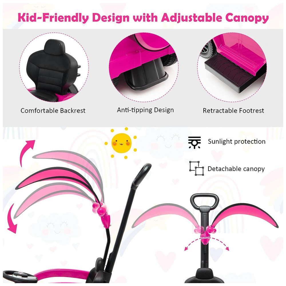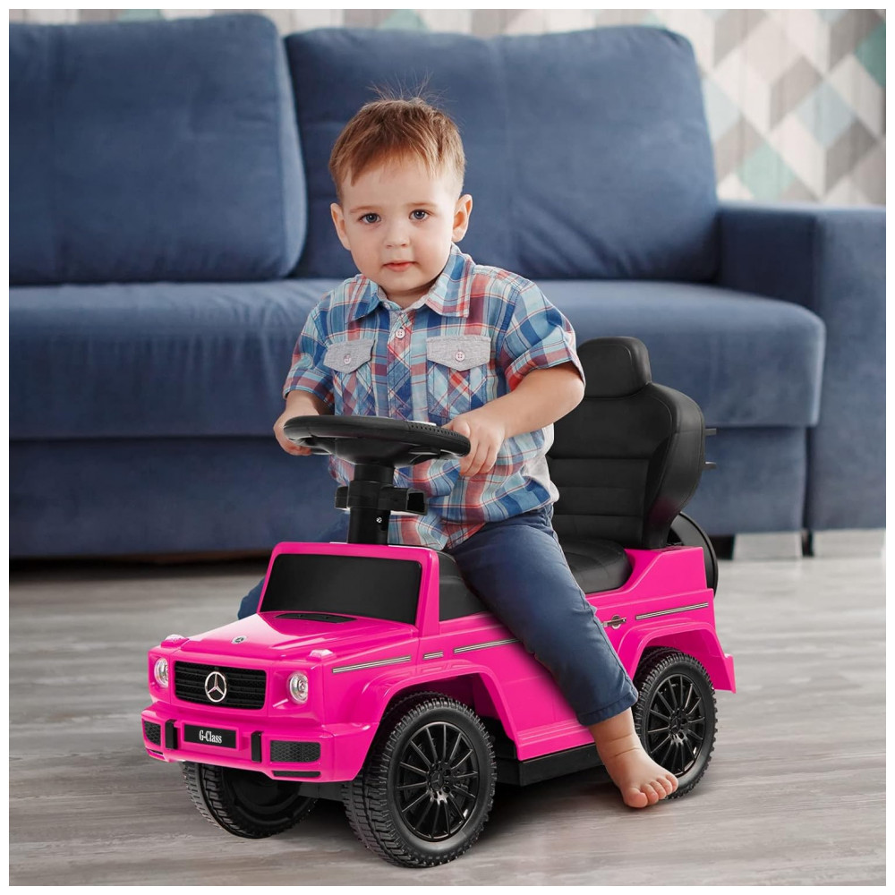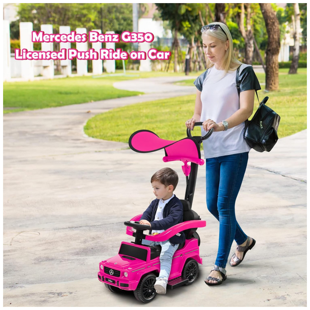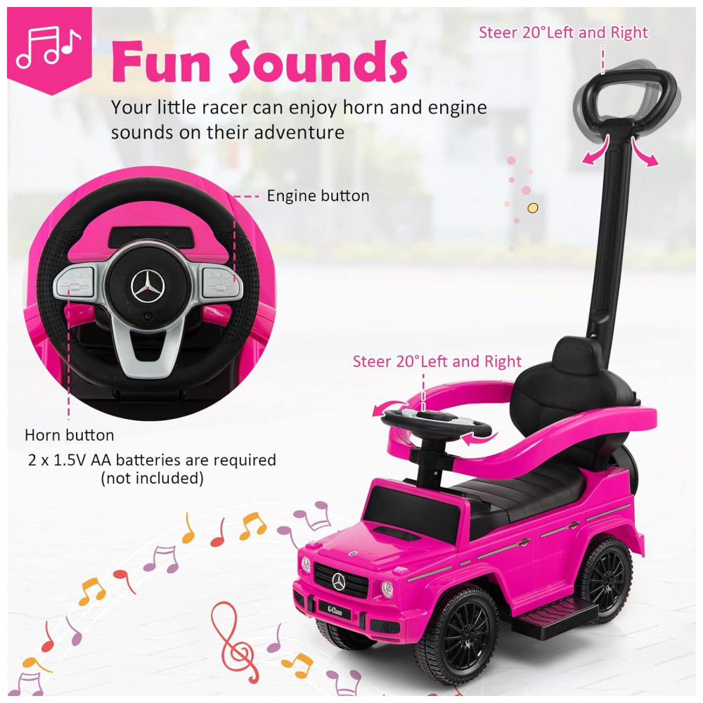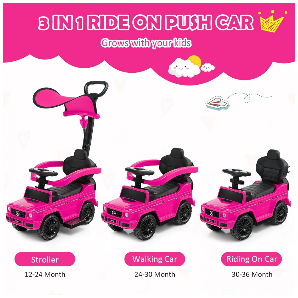 Carrinho de Passeio Infantil 3 em 1 com Alça Buzina e Compartimento de Baixo do Assento para Crianças de 1 a 3 Anos Costzon Mercedes Benz Rosa