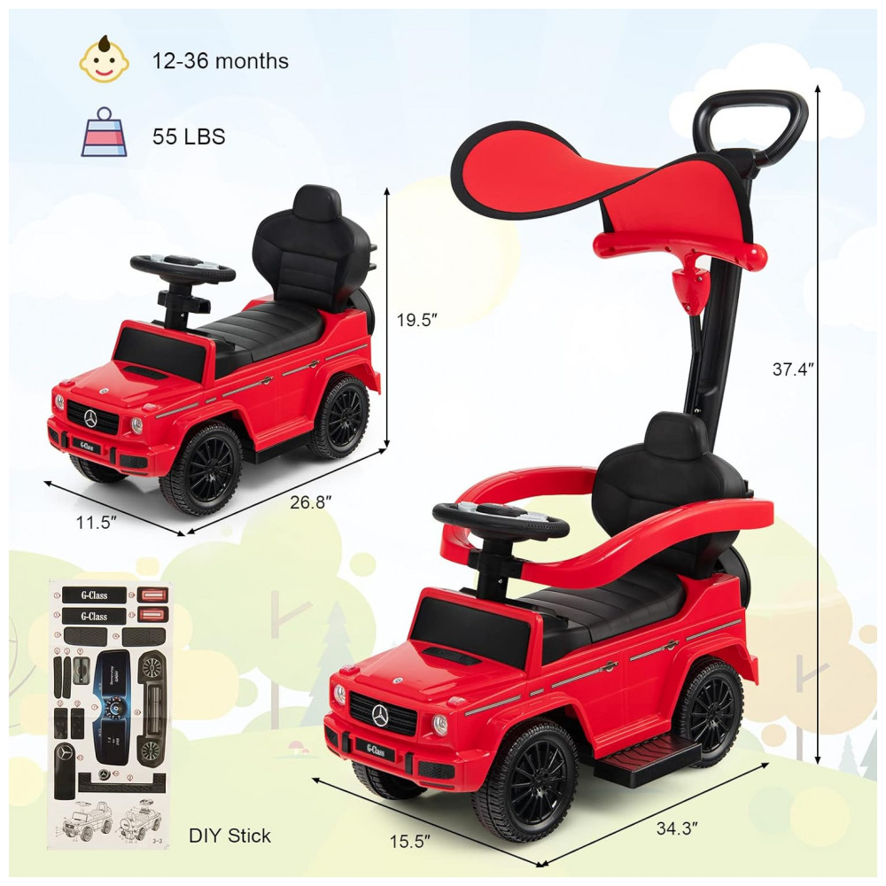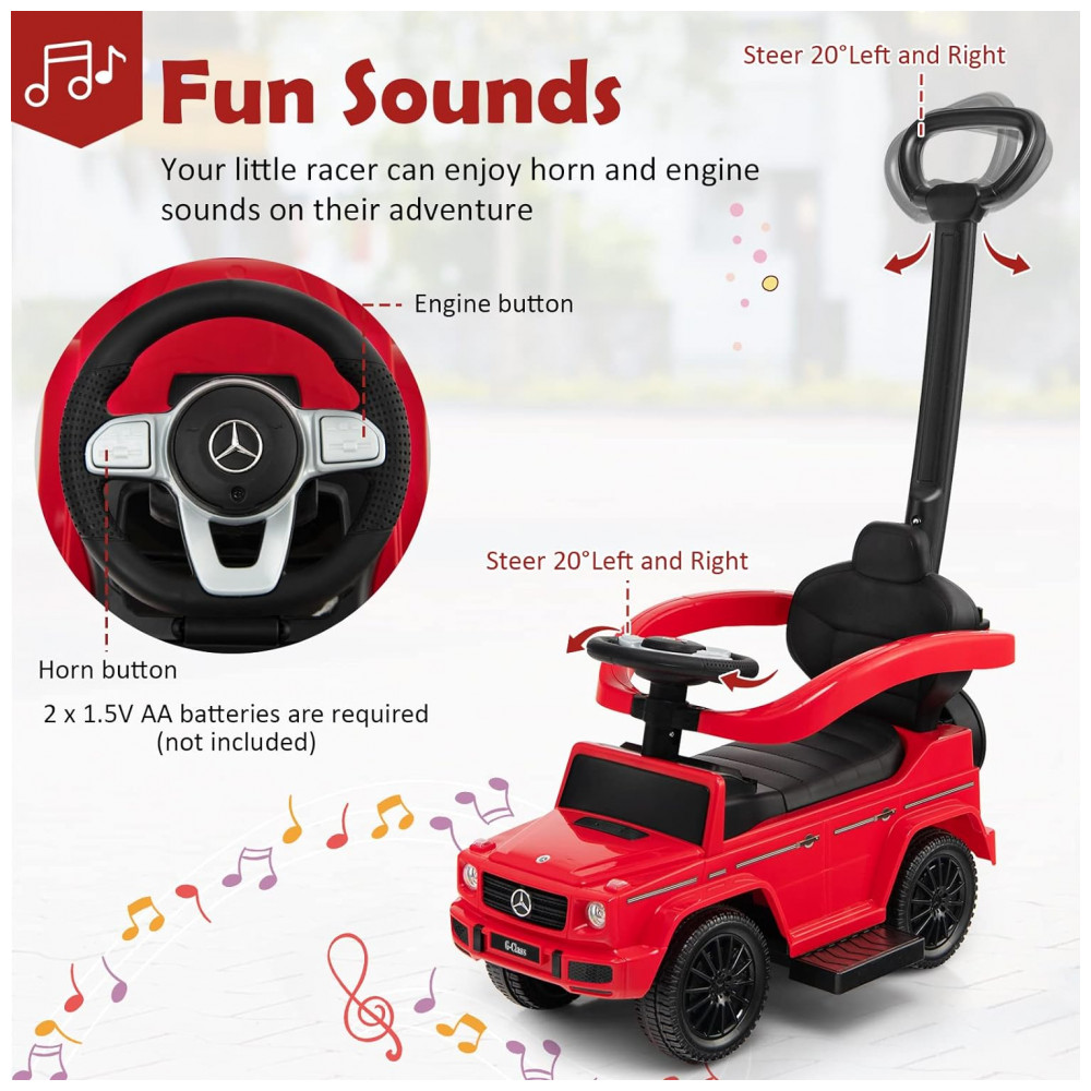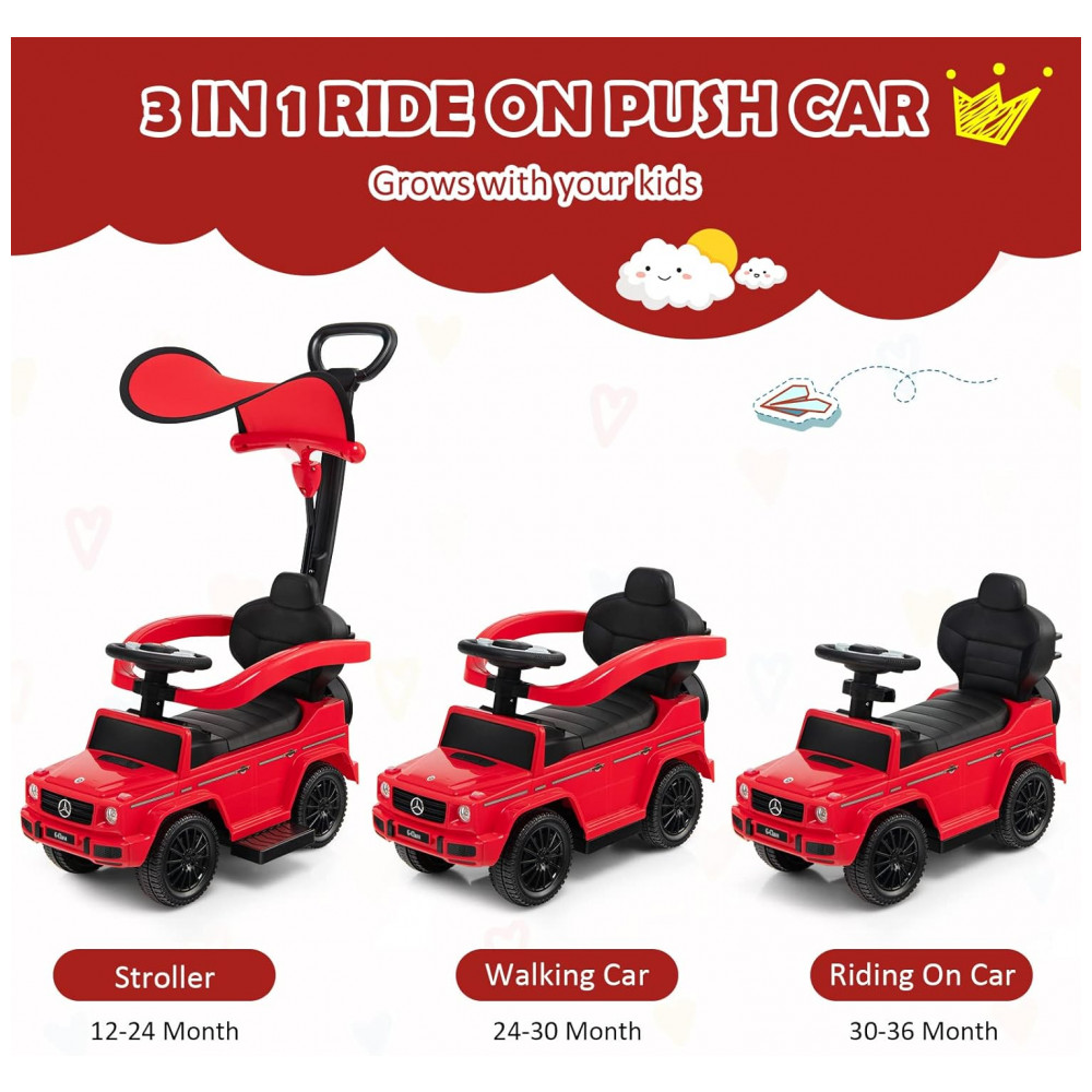 Carrinho de Passeio Infantil 3 em 1 com Alça Buzina e Compartimento de Baixo do Assento para Crianças de 1 a 3 Anos Costzon Mercedes Benz Vermelho