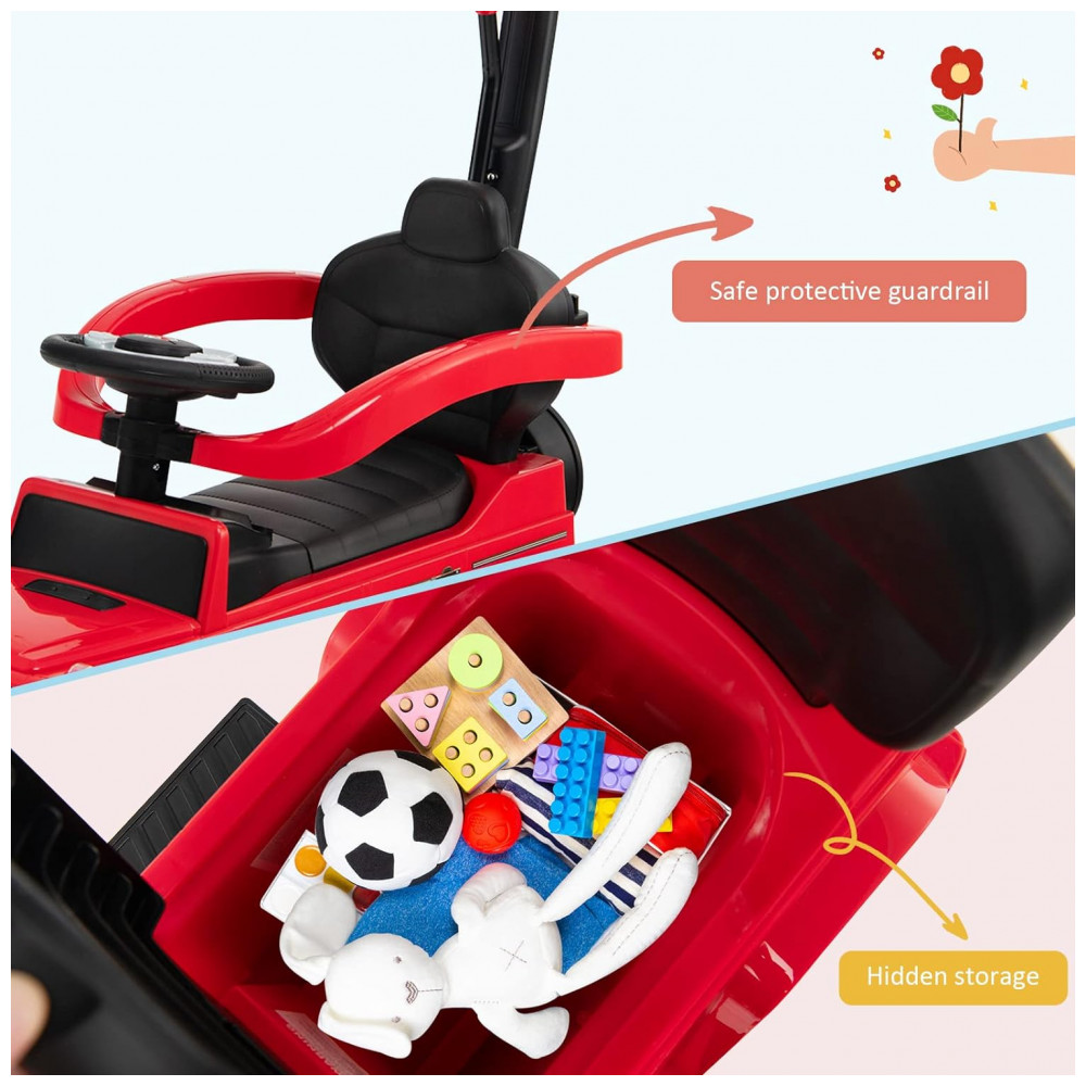 Design 3 em 1 atualizado: Uma combinação inteligente de carrinho, carrinho e andar de carro serve para satisfazer suas diferentes necessidades, o que certamente acompanhará o crescimento de crianças adoráveis. Graças a este design 3 em 1, as crianças podem deslizar sozinhas ou os pais podem mover o carro empurrando a pega para a frente.