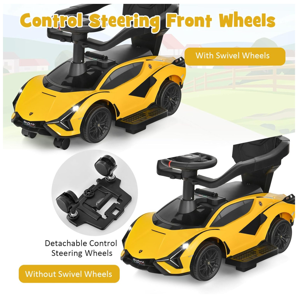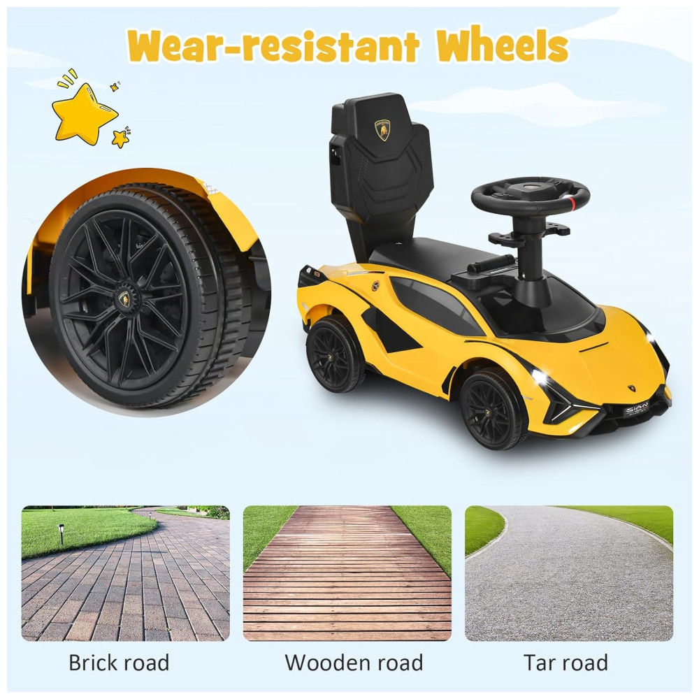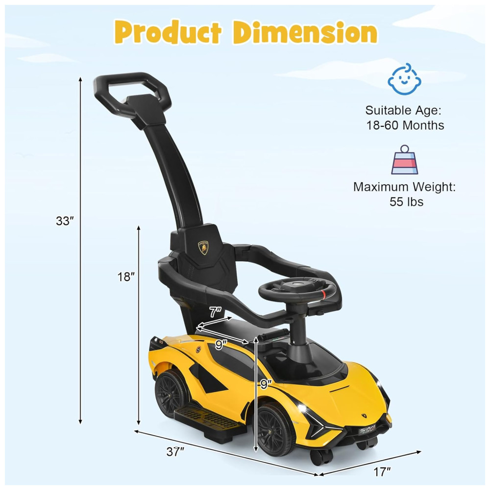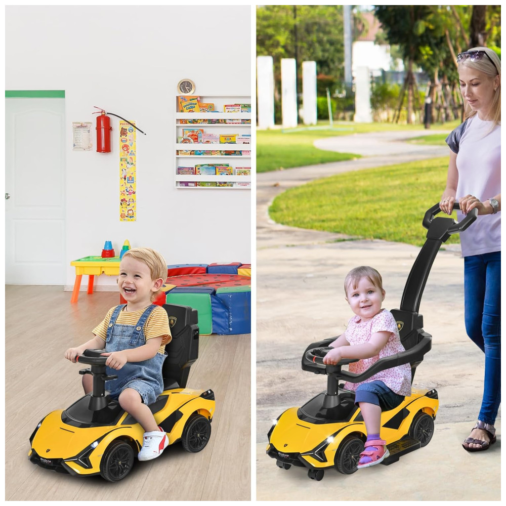Carro de passeio Lamborghini licenciado: O carrinho de bebê INFANS vem com visual Lamborghini licenciado traseiro. O carrinho de criança é a combinação perfeita de estilo e funcionalidade. Este carro licenciado é o presente perfeito para uma criança.
