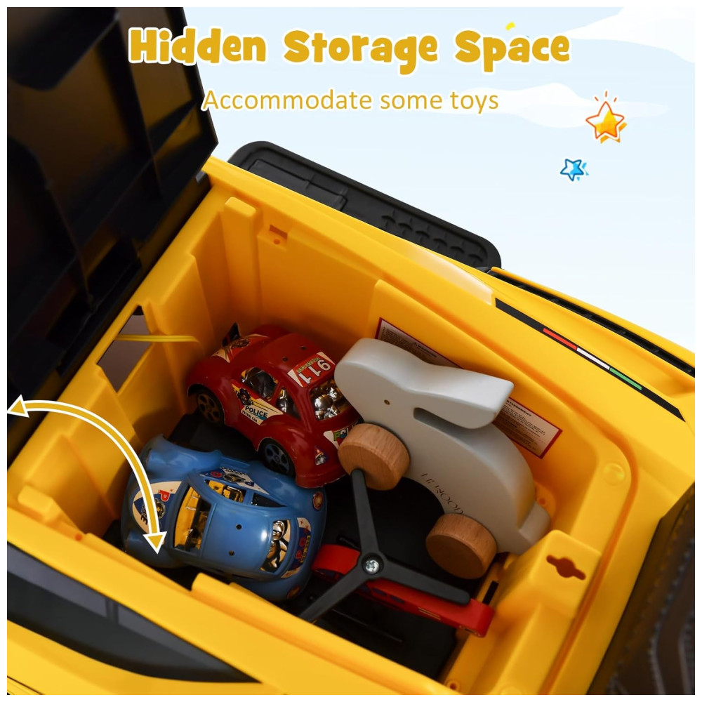 Várias funções aplicáveis: O carro de passeio vem com um gancho conveniente, que pode transportar copos de água e sacolas infantis. Um espaço de zenamento escondido sob o assento para pequenos itens, como lanches e brinquedos. Além disso, o painel de controle possui USB e display de energia.
