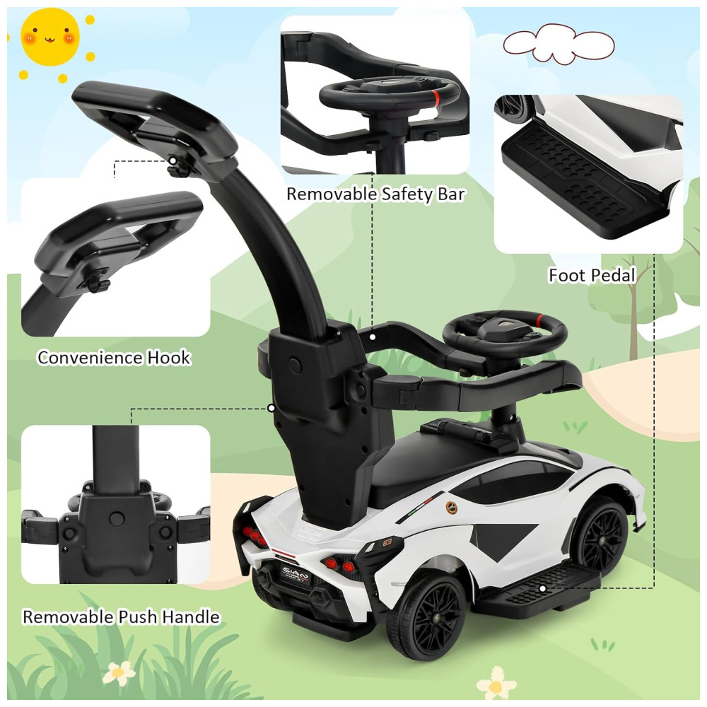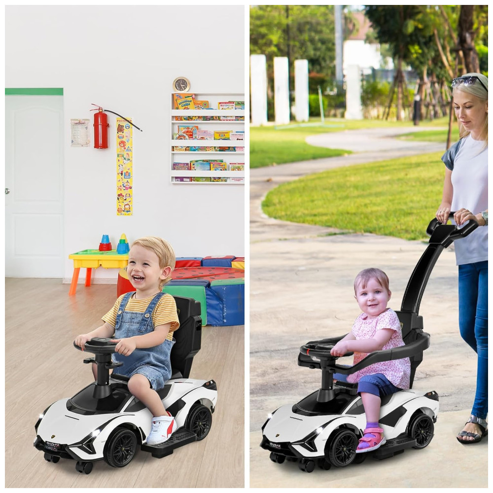 Carro de empurrar conveniente 3 em 1: O carro de passeio 3 em 1 pode ser transformado em carrinho de bebê, carrinho de passeio ou carro de passeio, permitindo que ele cresça com seu filho. O carro tem 2 modos de controle: controle dos pais e controle dos filhos. Além disso, o volante removível é conveniente para a mãe controlar a direção.