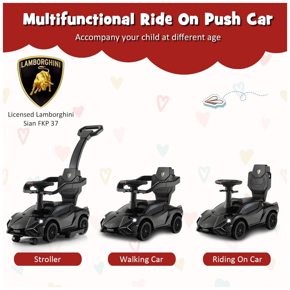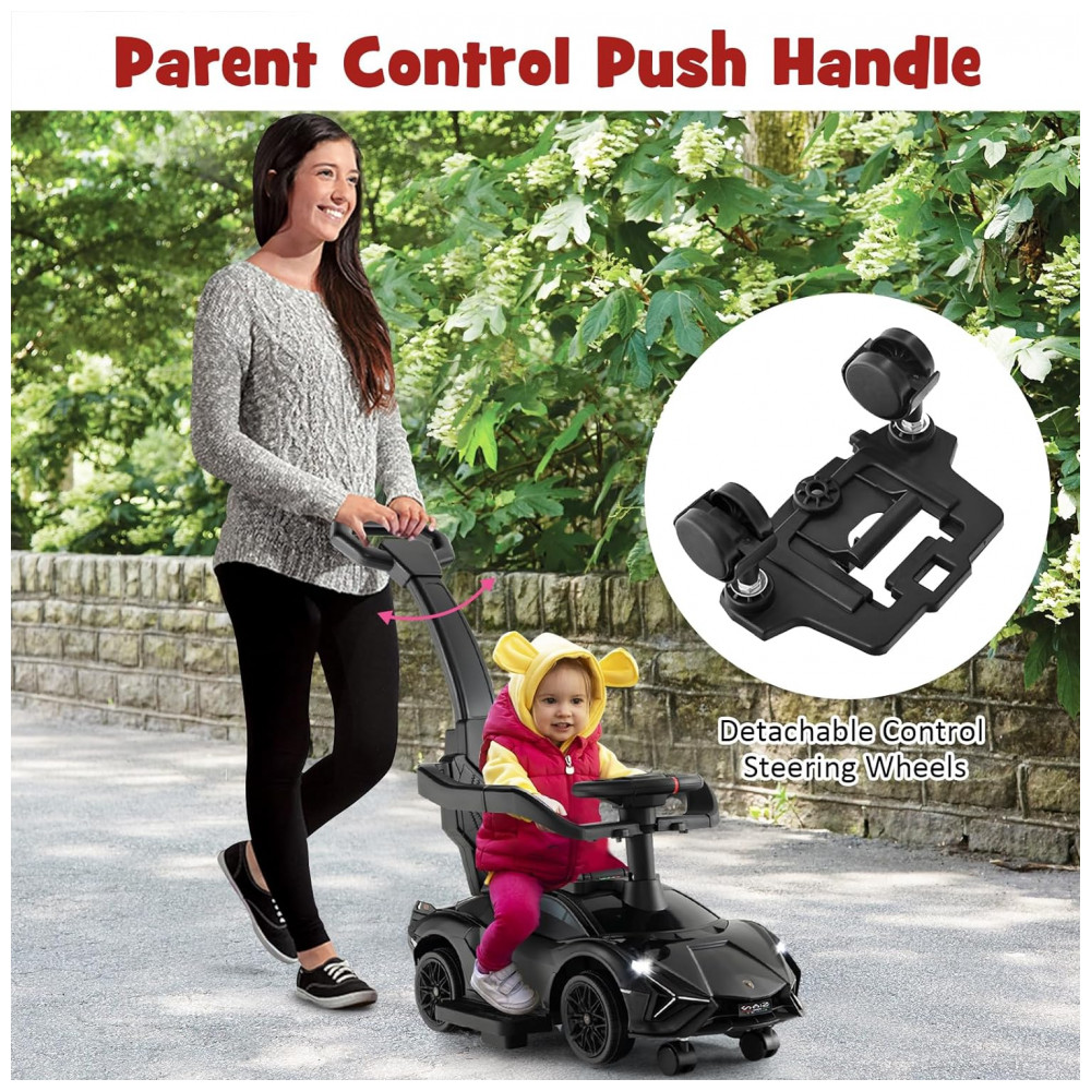 Carro de empurrar conveniente 3 em 1: O carro de passeio 3 em 1 pode ser transformado em carrinho de bebê, carrinho de passeio ou carro de passeio, permitindo que ele cresça com seu filho. O carro tem 2 modos de controle: controle dos pais e controle dos filhos. Além disso, o volante removível é conveniente para a mãe controlar a direção.