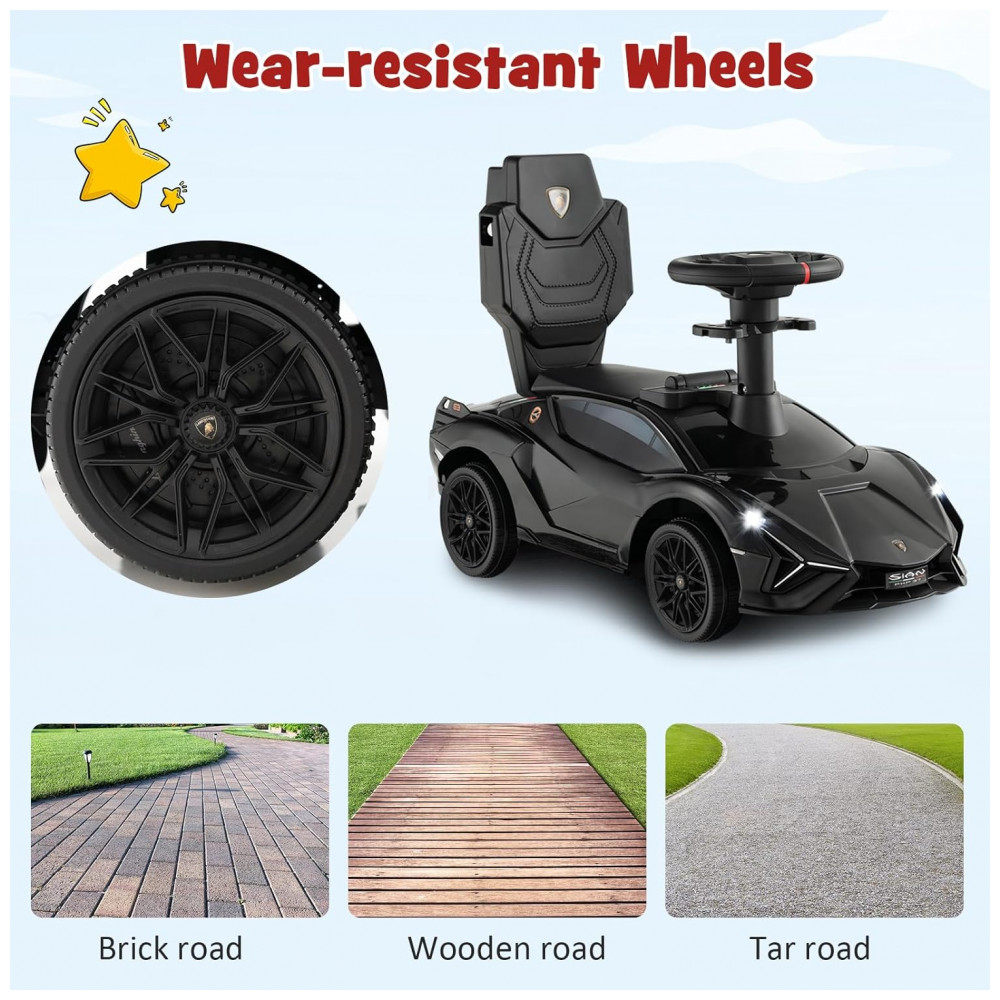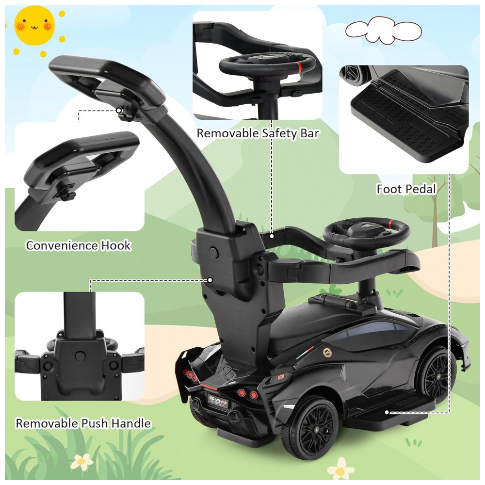 Experiência de direção real: O carro deslizante possui um volante confortável, efeitos sonoros que imitam os sons de um motor real. Isso permite que seu filho sinta que está no controle de seu próprio veículo. Nota: 4 pilhas AA de 1,5 V não incluídas.