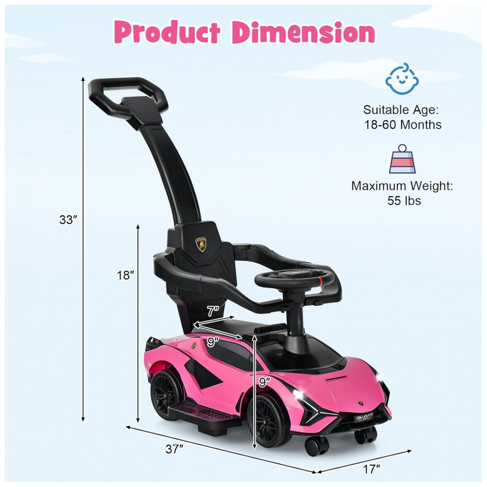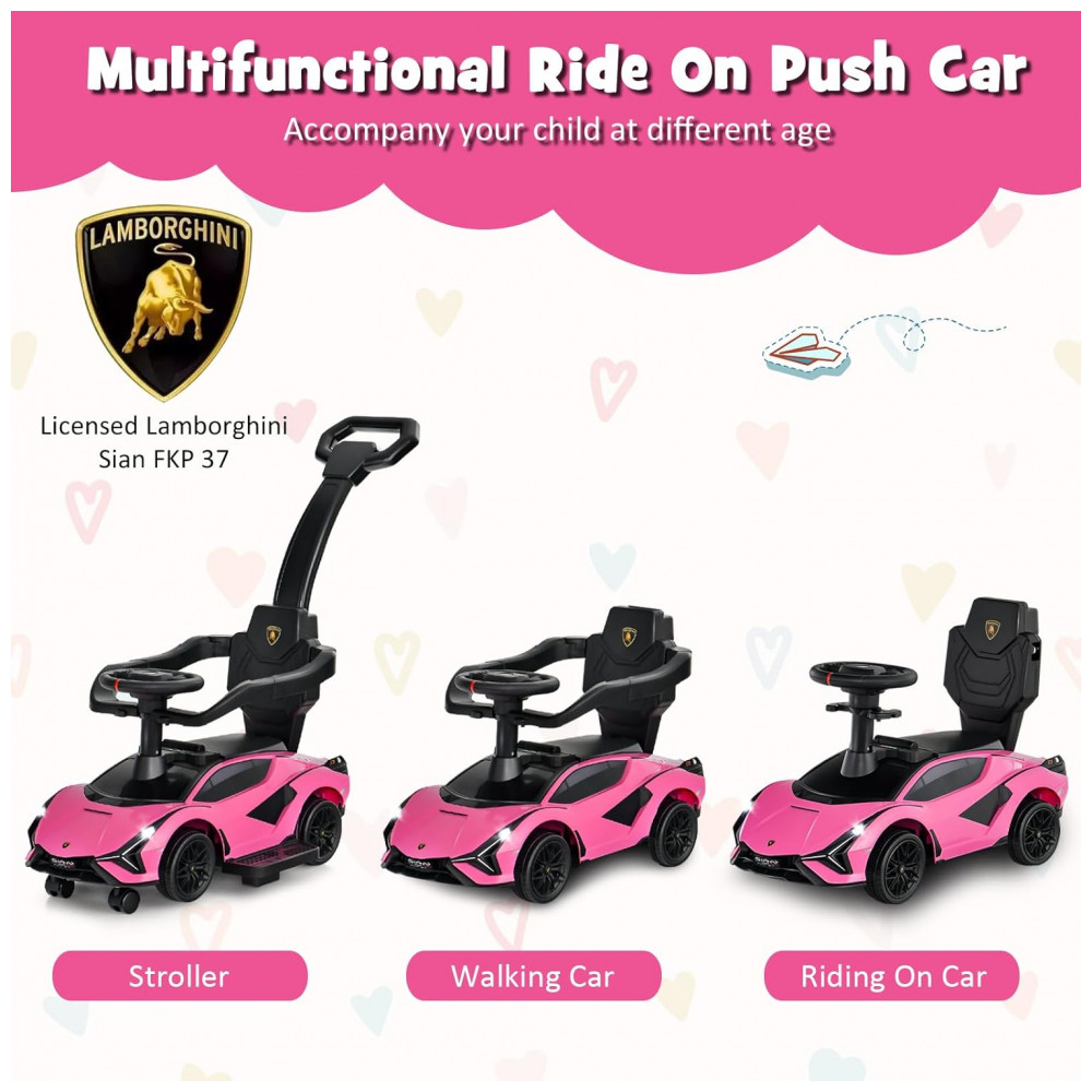 Carrinho de Passeio Infantil 3 em 1 com Alça Música USB Farol e Compartimento Sob o Assento para Crianças de 1 a 5 Anos INFANS Rosa