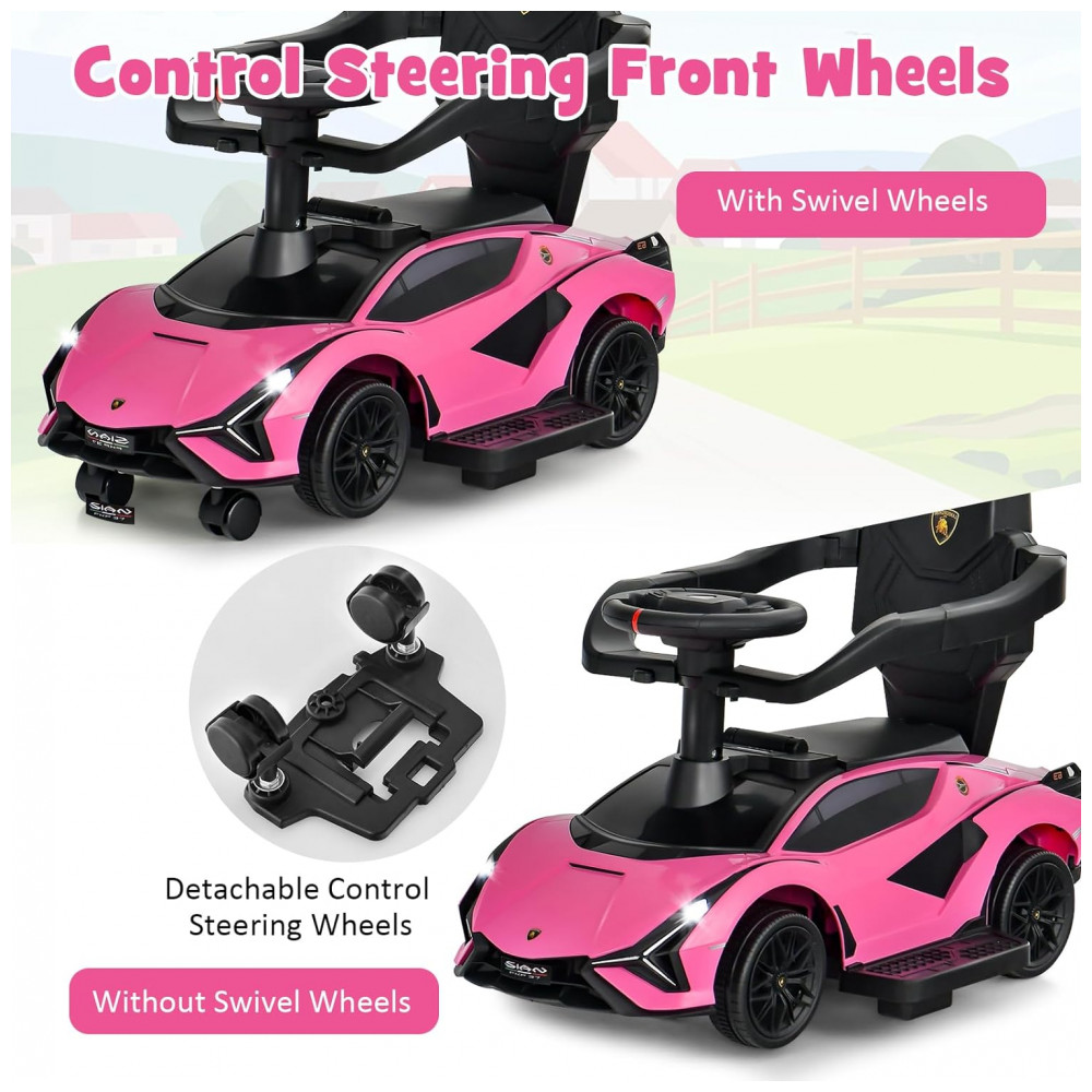 Carro de empurrar conveniente 3 em 1: O carro de passeio 3 em 1 pode ser transformado em carrinho de bebê, carrinho de passeio ou carro de passeio, permitindo que ele cresça com seu filho. O carro tem 2 modos de controle: controle dos pais e controle dos filhos. Além disso, o volante removível é conveniente para a mãe controlar a direção.