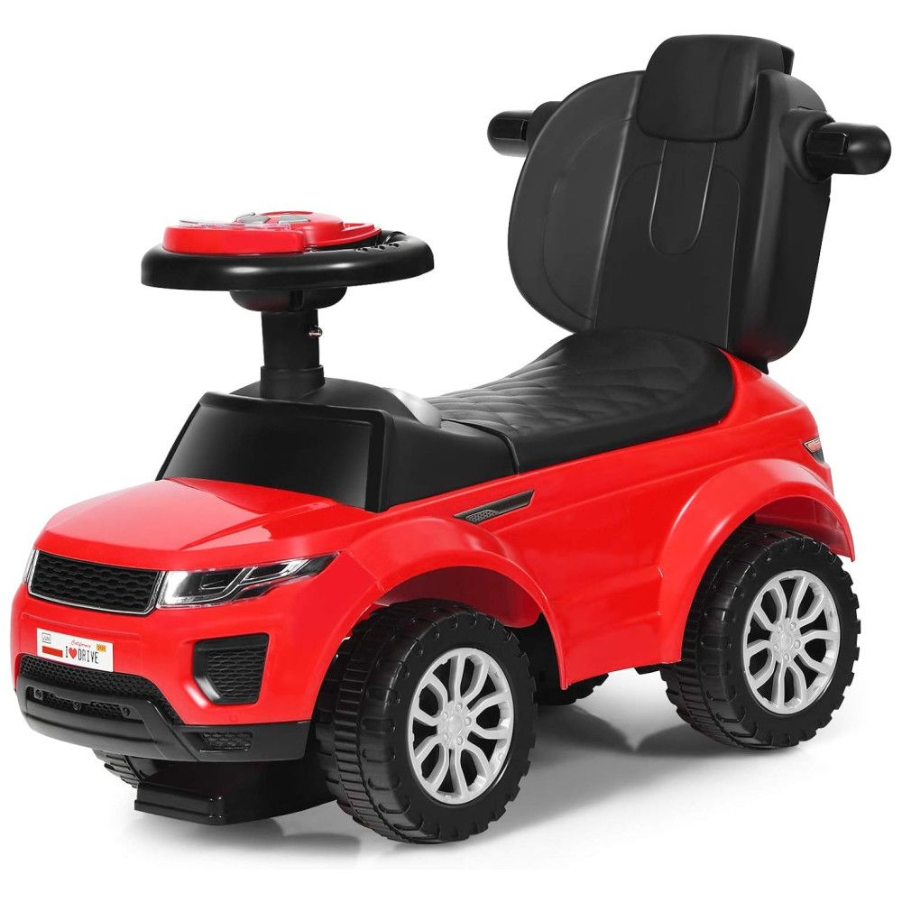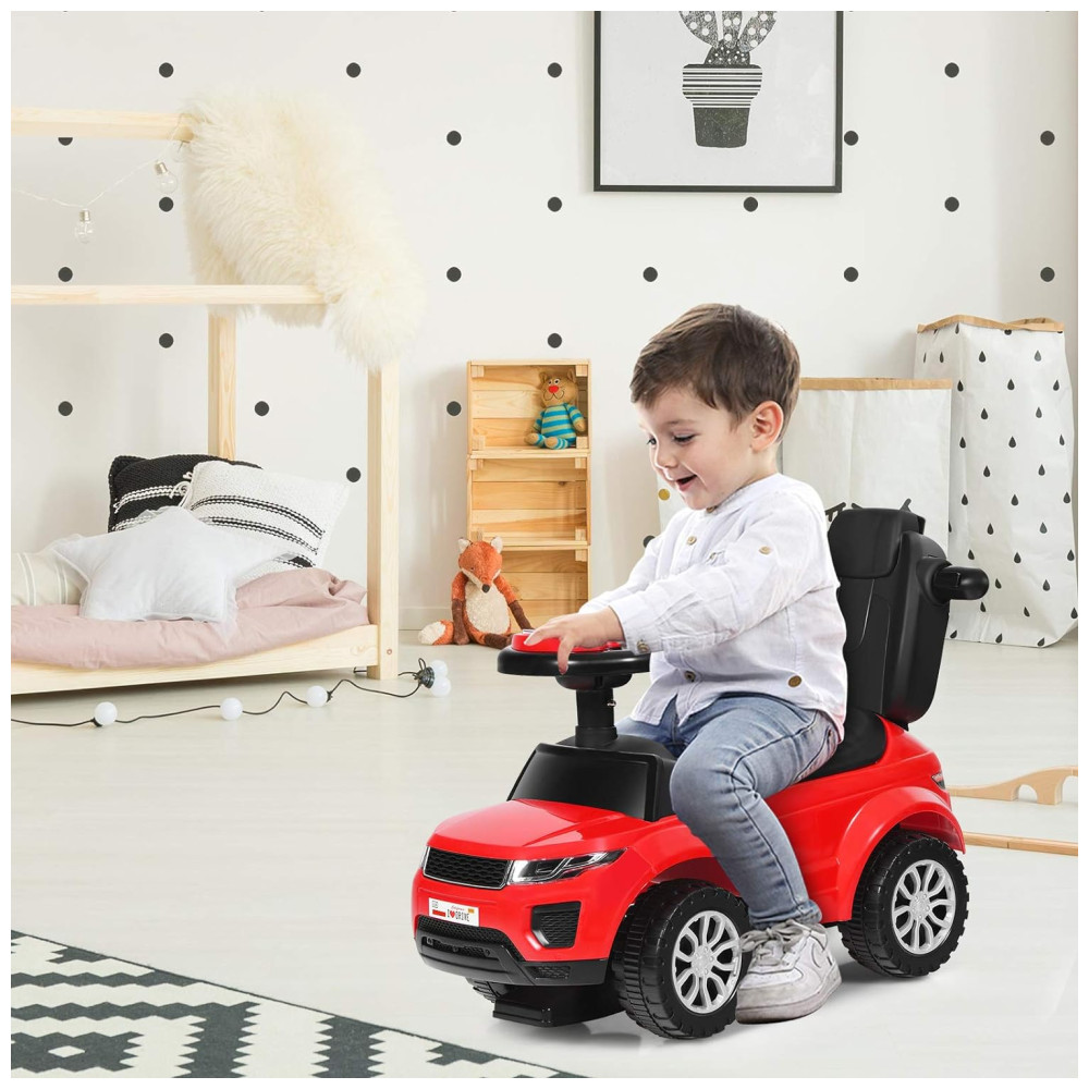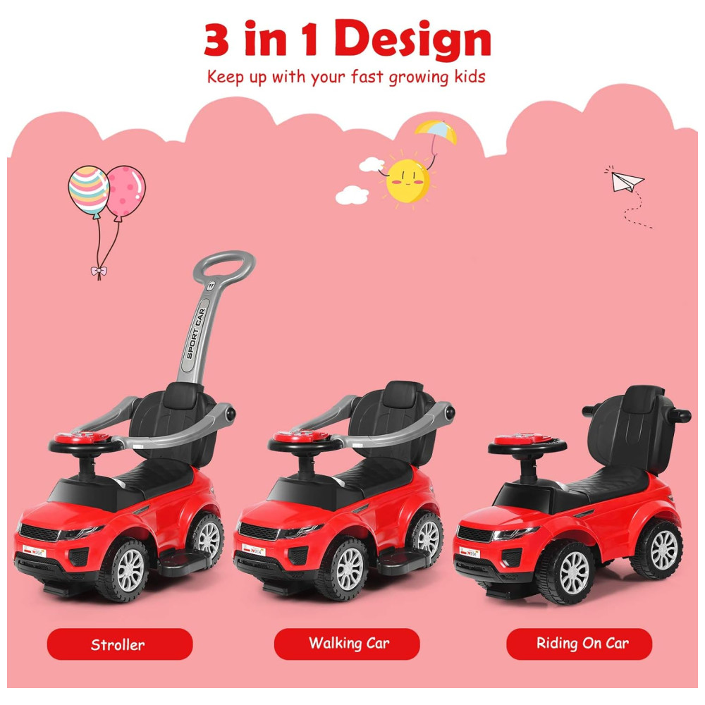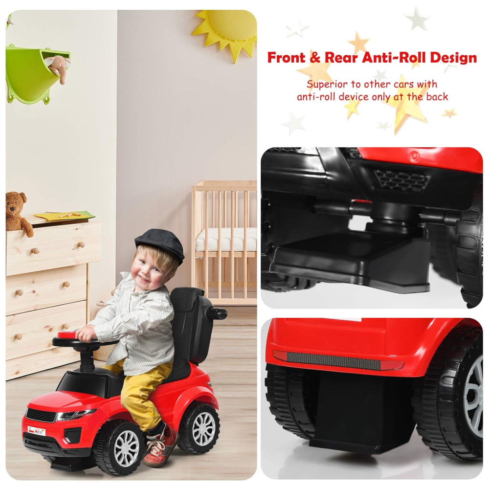 Carrinho de Passeio Infantil 3 em 1 com Buzina Música Luz e Proteção de Braço para Crianças de 1 a 3 Anos Costzon Vermelho