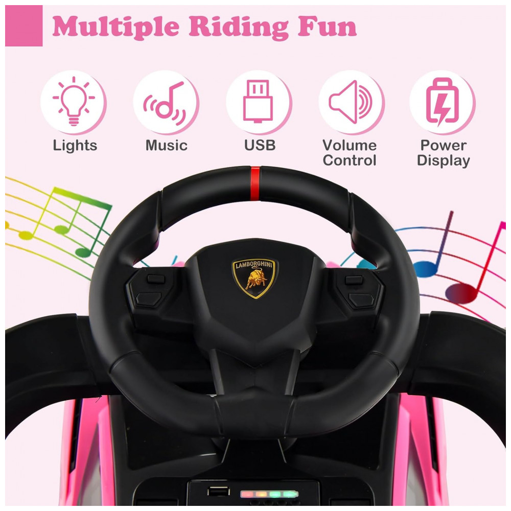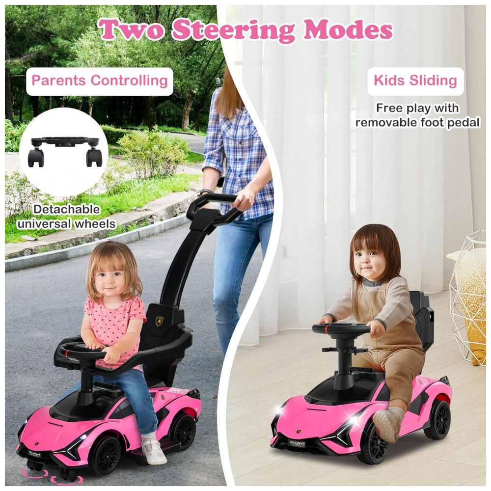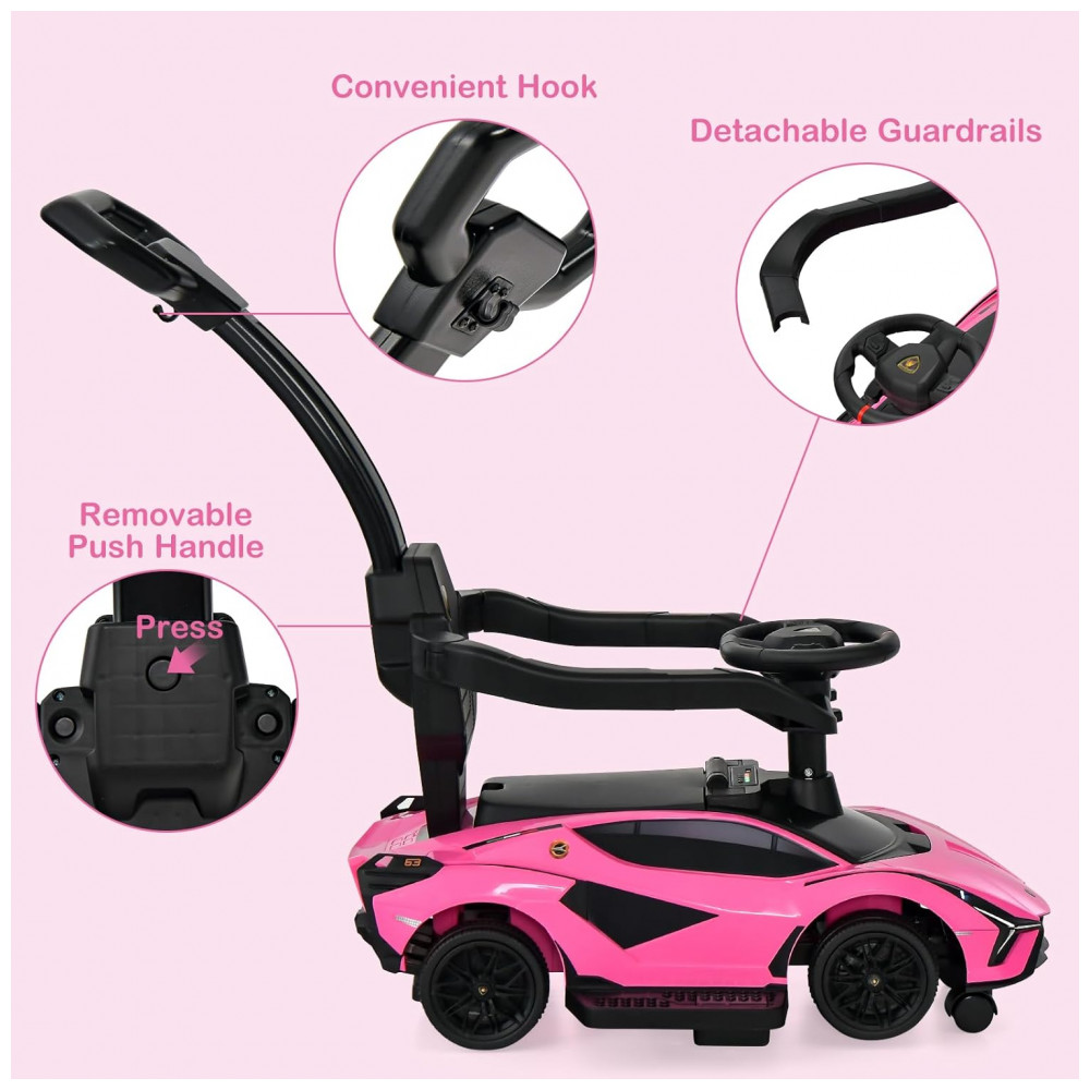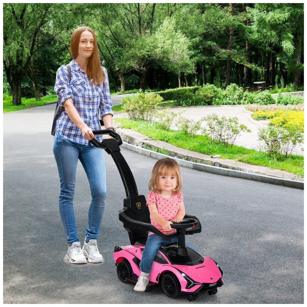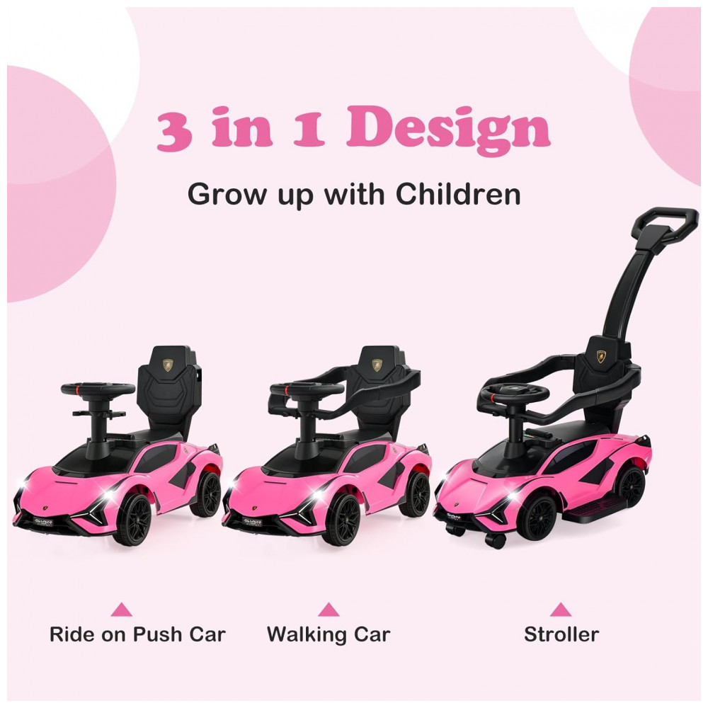 Carrinho de Passeio Infantil 3 em 1 com Rodas Universais Alça Guarda Corpos Removíveis e Música OLAKIDS Lamborghini Rosa