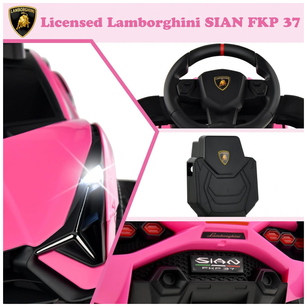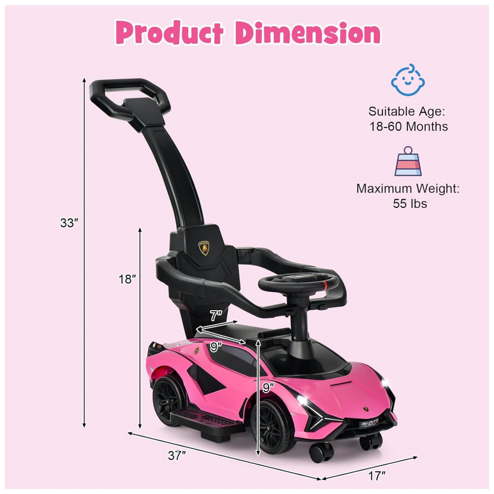 Carro Lamborghini Push licenciado 3 em 1: O carro de passeio OLAKIDS foi projetado com aparência Lamborghini Sian FKP 37 oficialmente licenciada para oferecer uma experiência de pilotagem incrível. Este brinquedo de empurrar e andar pode ser como carro de empurrar, andador e carro deslizante com alça removível, guarda corpos, pedal e rodas universais.