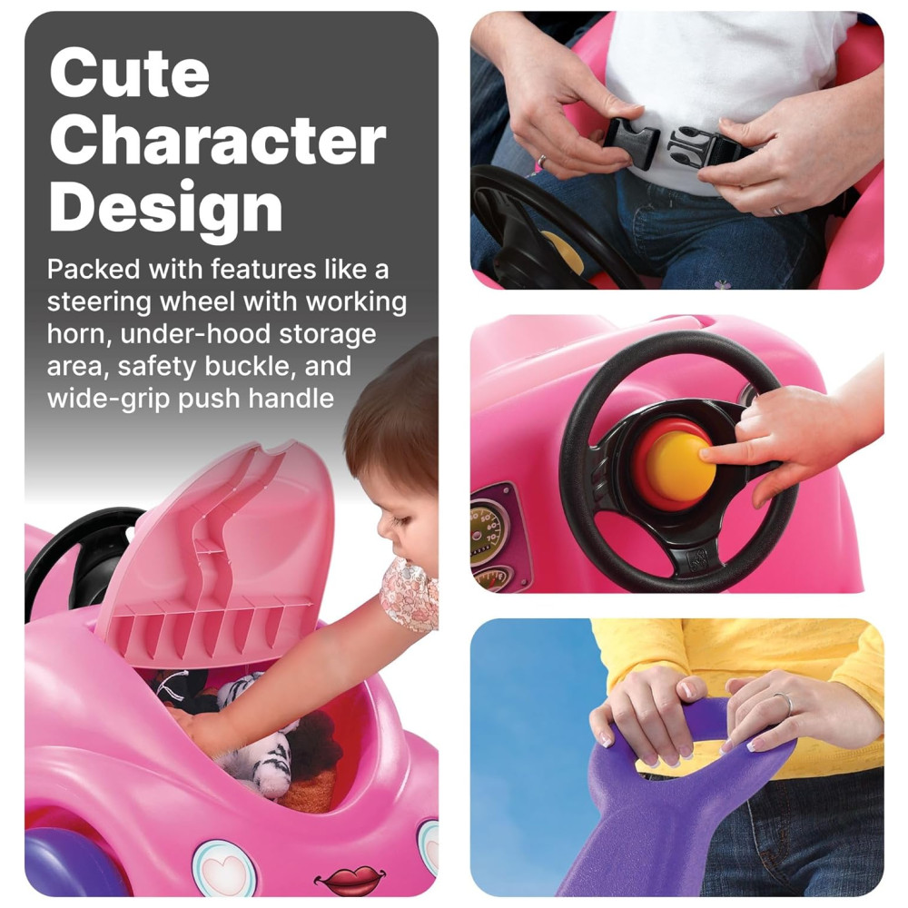 Carrinho de Passeio Infantil com Cinto de Segurança e Buzina Feito de Plástico Durável Suporta até 227 kg Para Crianças de 15 a 4 Anos – Step2 Rosa