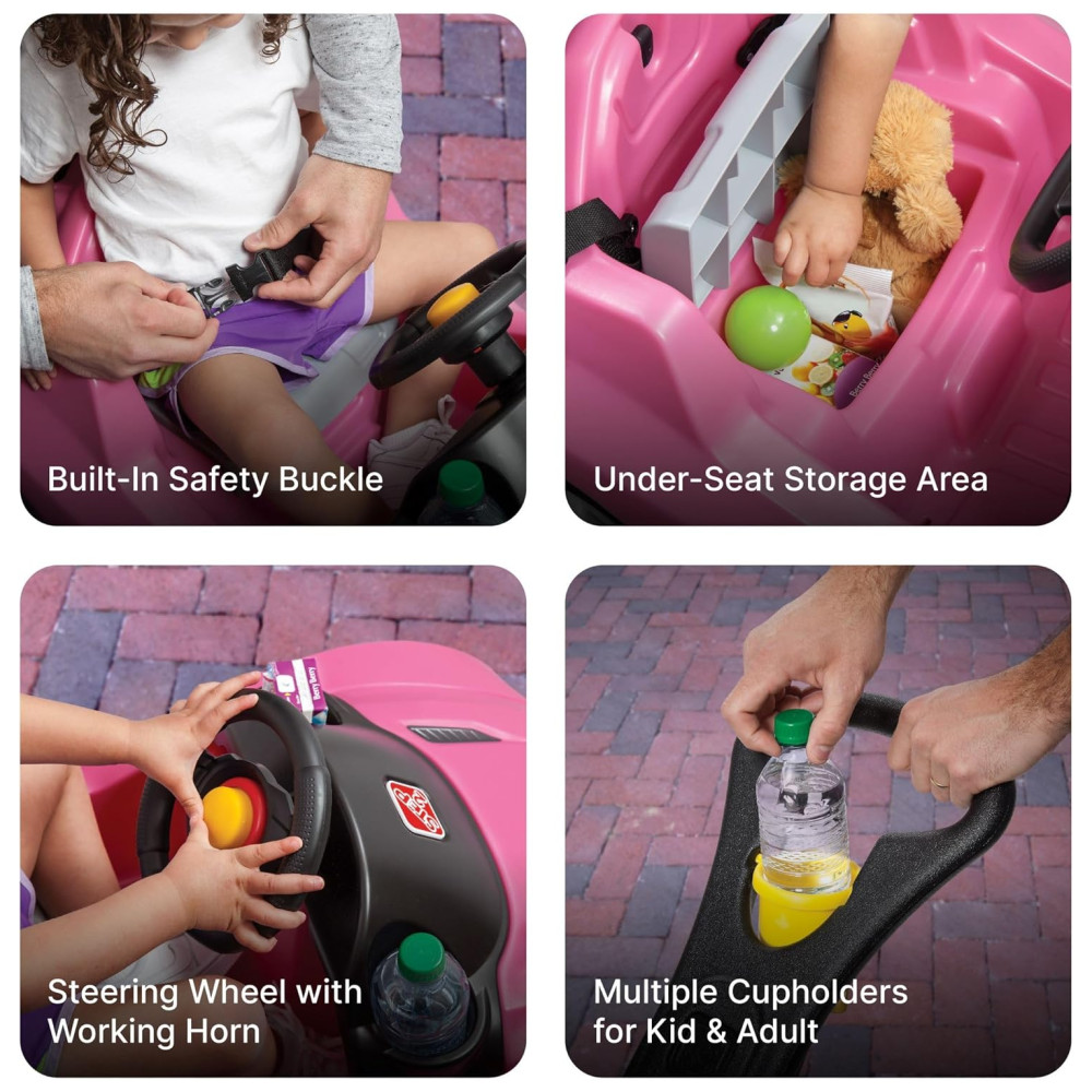 Carrinho de Passeio Infantil com Cinto de Segurança e Buzina para Crianças de 1 a 4 Anos de Idade Step2 Rosa