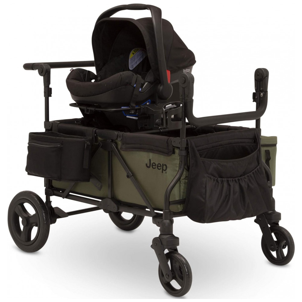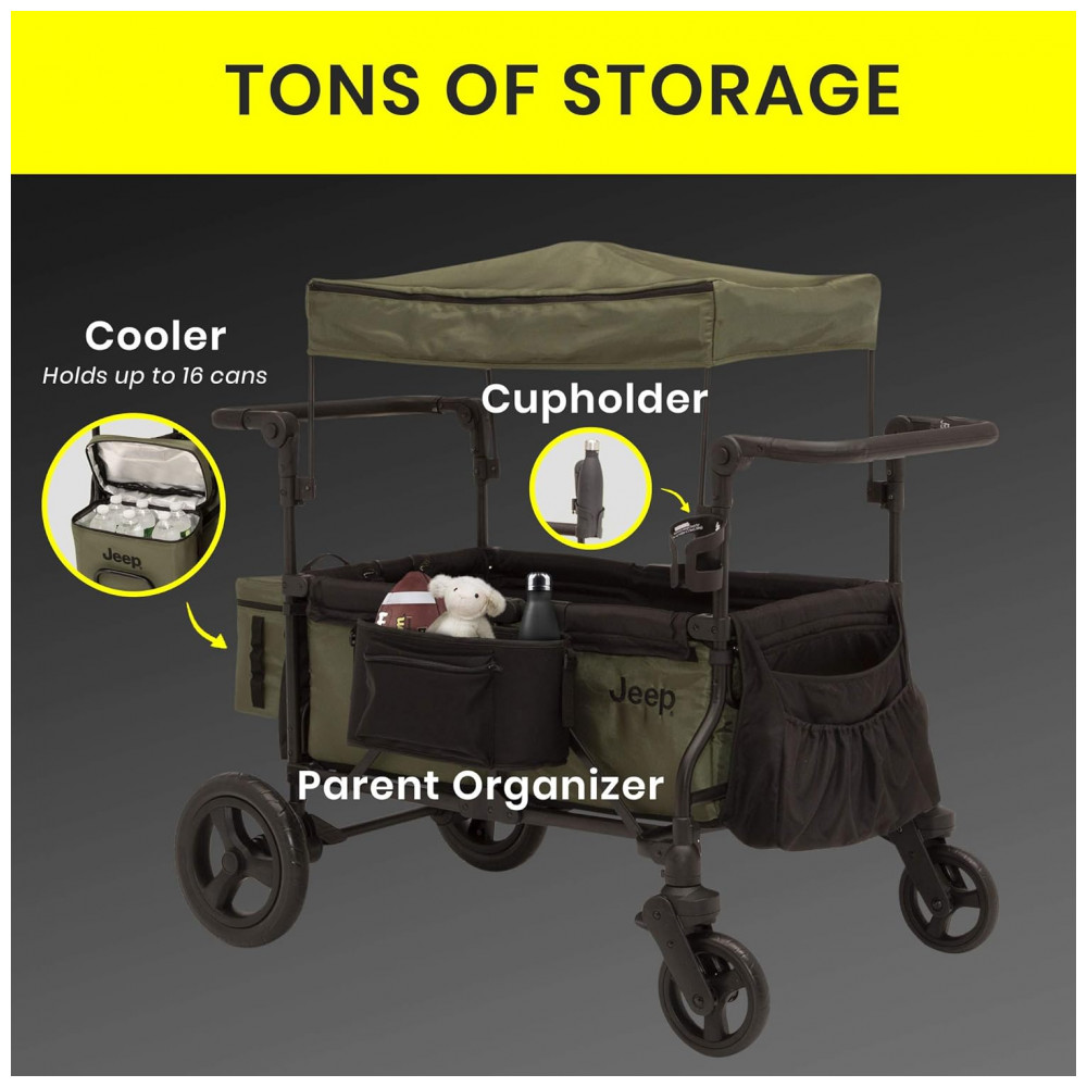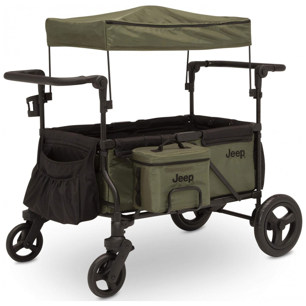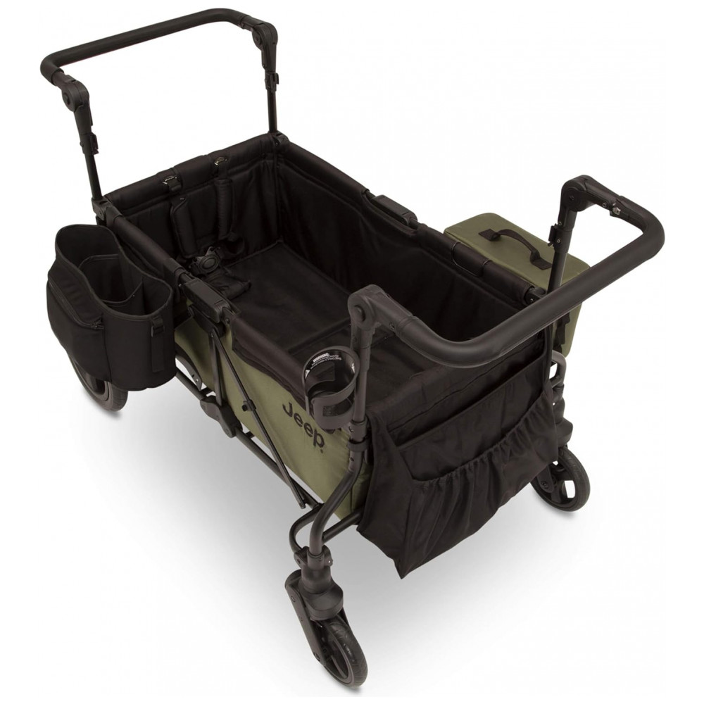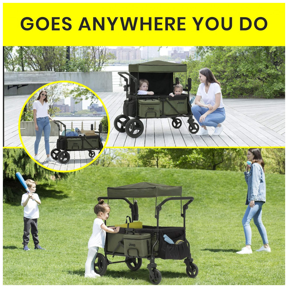 Carrinho de Passeio para 2 Crianças Multifuncional com Bolsa Térmica e Adaptador para Assento de Carro até 50 kg JEEP Verde