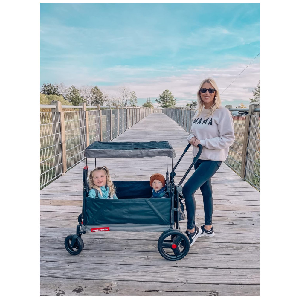 PARA CRIANÇAS Radio Flyer Stroll N Wagons passa no padrão de segurança de brinquedos ASTM f963 13. Este vagão inclui um freio de pé traseiro, cintos de segurança de 5 pontos e um dossel de proteção UV para proteger seus pequenos do sol.
