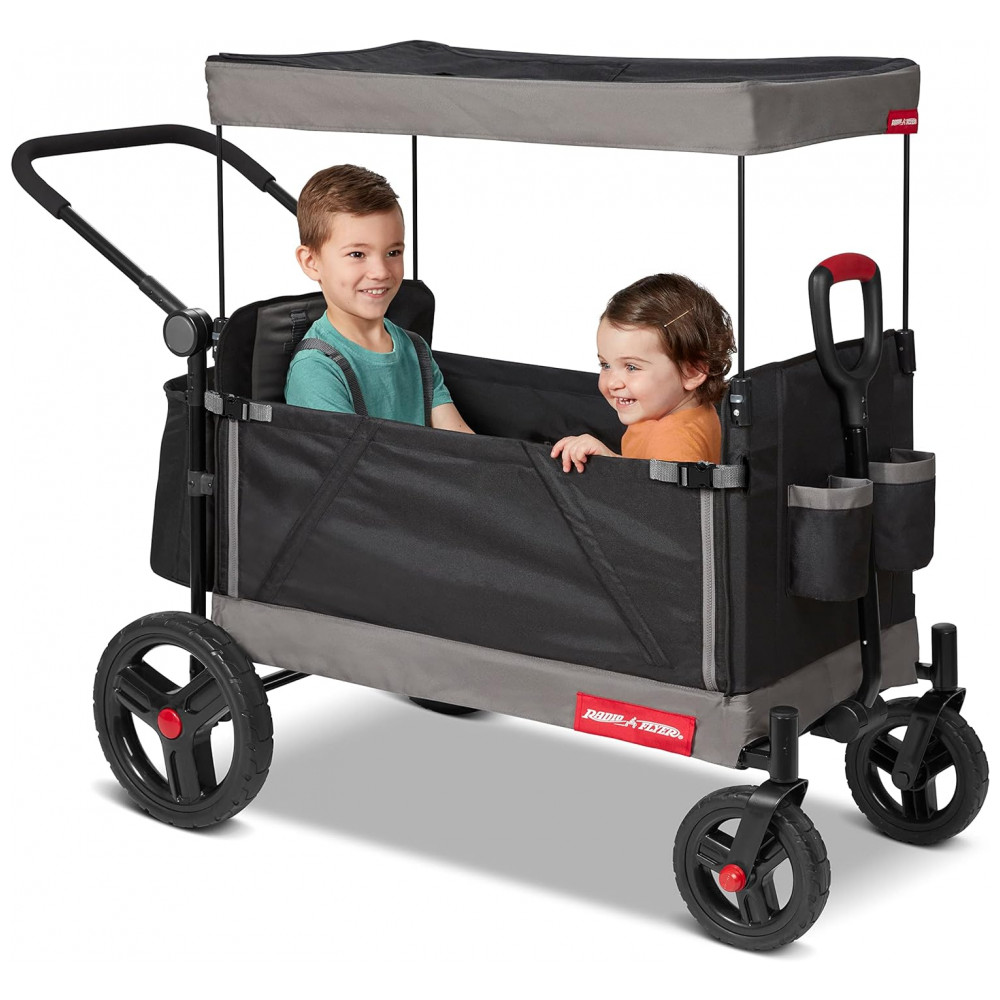 Carrinho de Passeio para 2 Crianças Multifuncional com Compartimento de zenamento Radio Flyer Preto