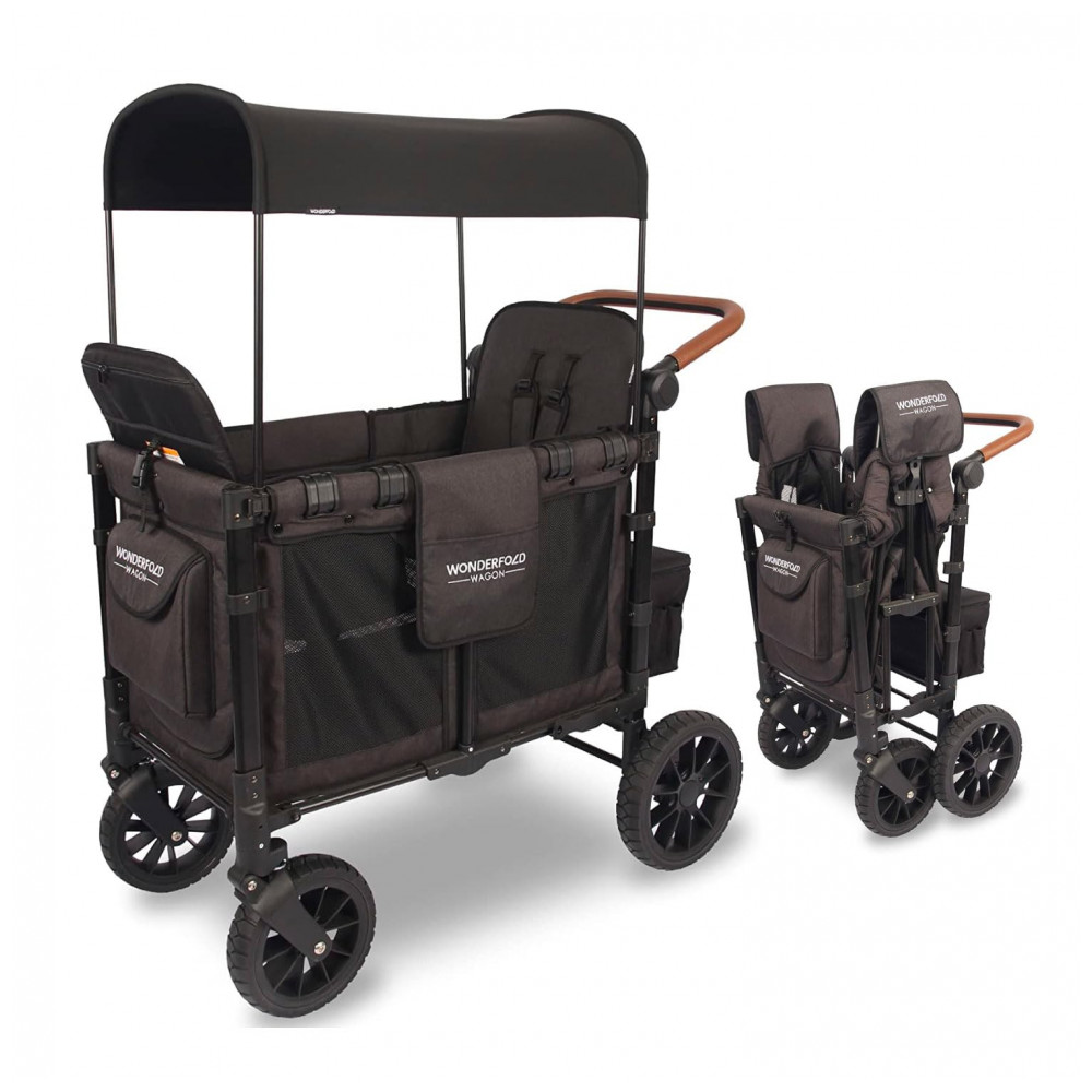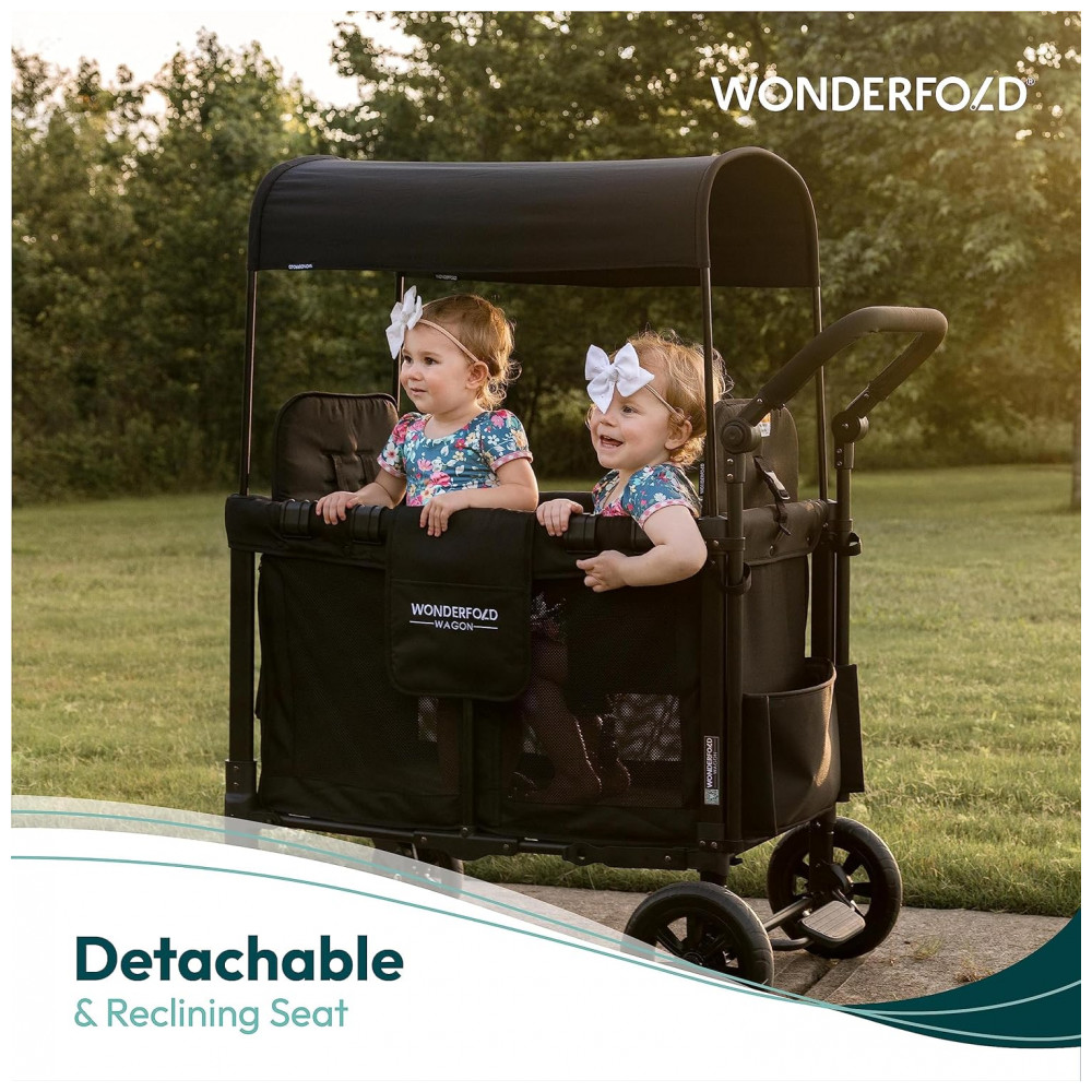 Carrinho de Passeio para 2 Crianças Multifuncional com Porta Objeto e Cobertura até 136 kg WONDERFOLD W2 Preto Vulcânico