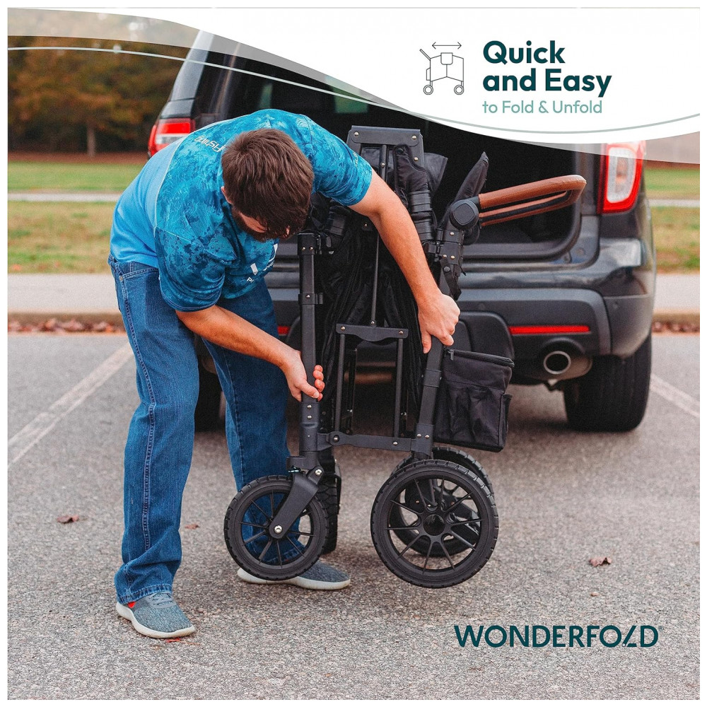 CARGAS DE ZENAMENTO O carrinho duplo WonderFold também vem com zenamento extra em todos os lados, incluindo cesta traseira destacável, bolso no painel traseiro e bolsa de assento para capacidade máxima de zenamento