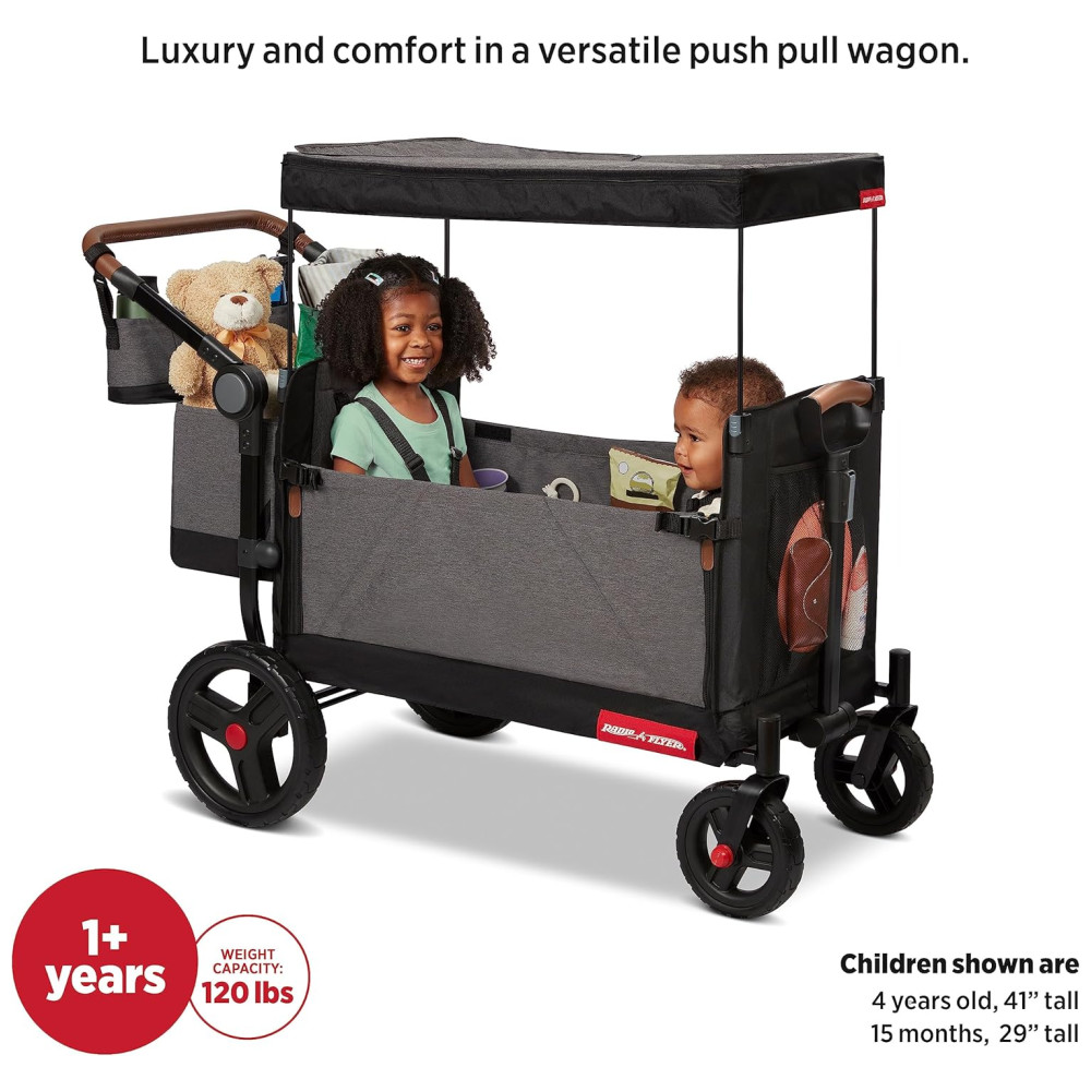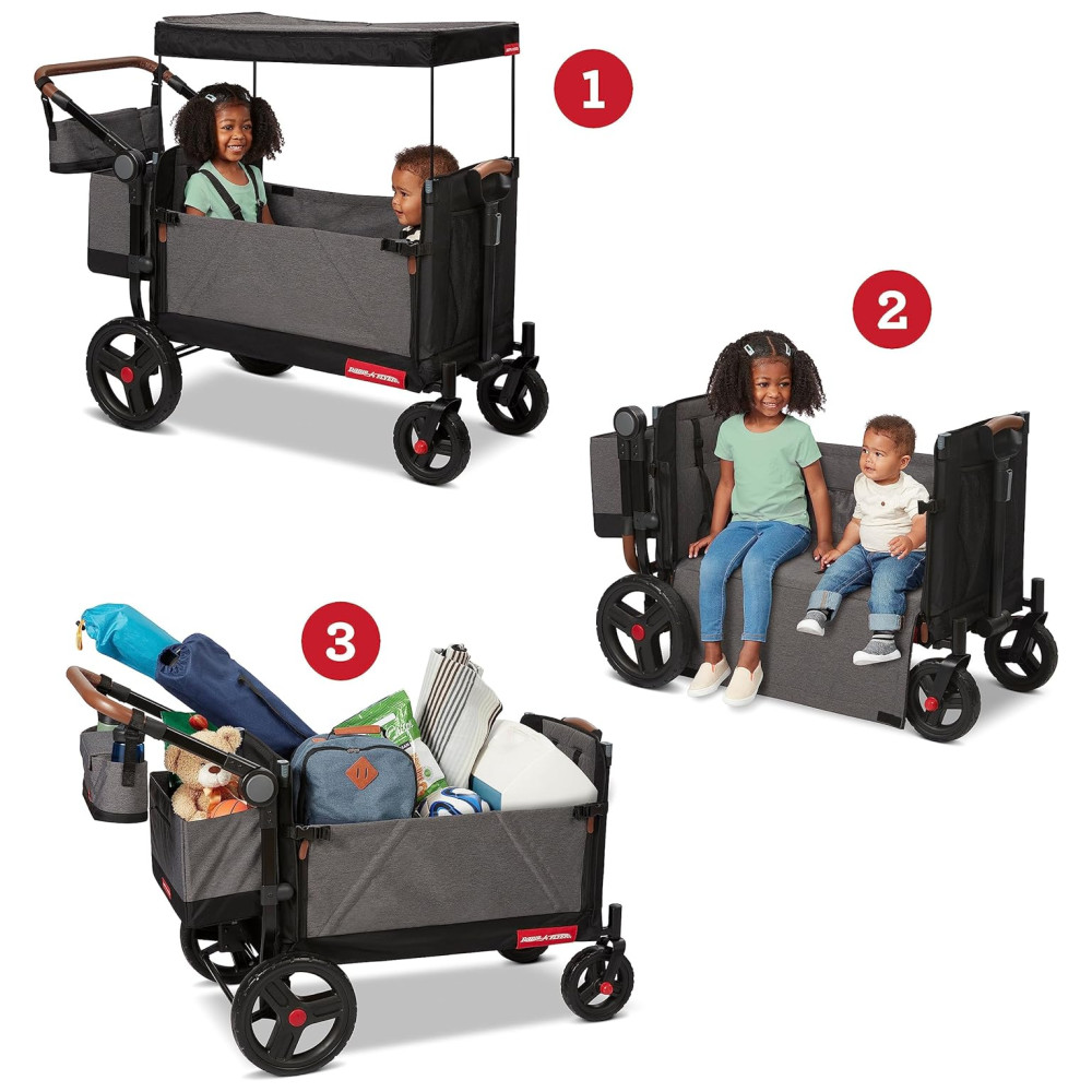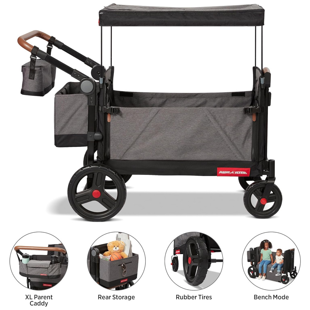 Carrinho de Passeio Vagão Dobrável Multifuncional para Crianças Radio Flyer Cinza e Preto