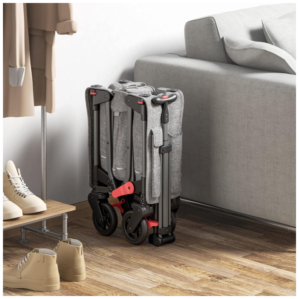 Carrinho de Passeio Vagão Dobrável para 2 Crianças com Bolsa de Transporte Ever Advanced Cinza