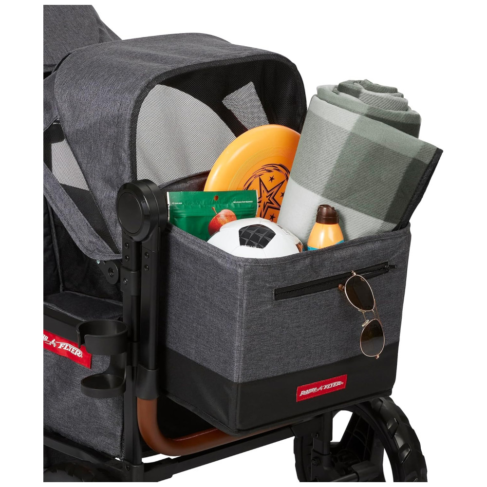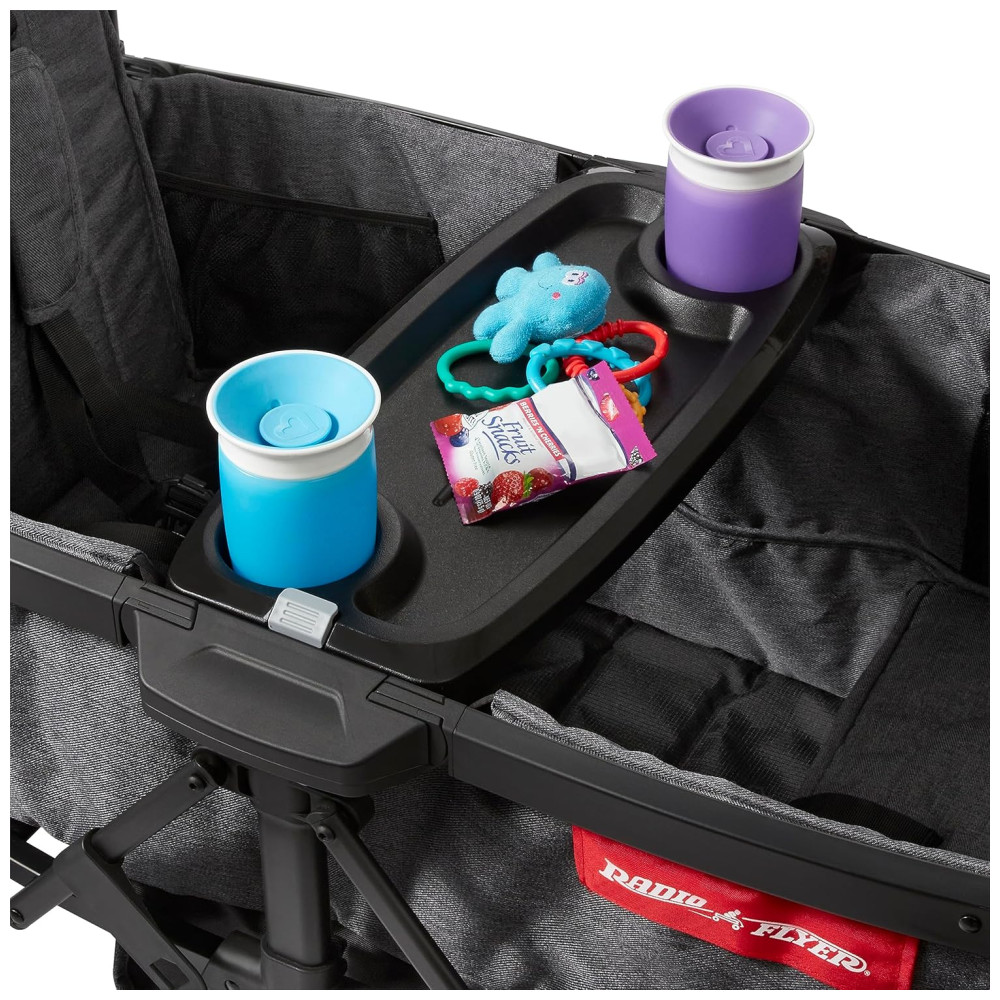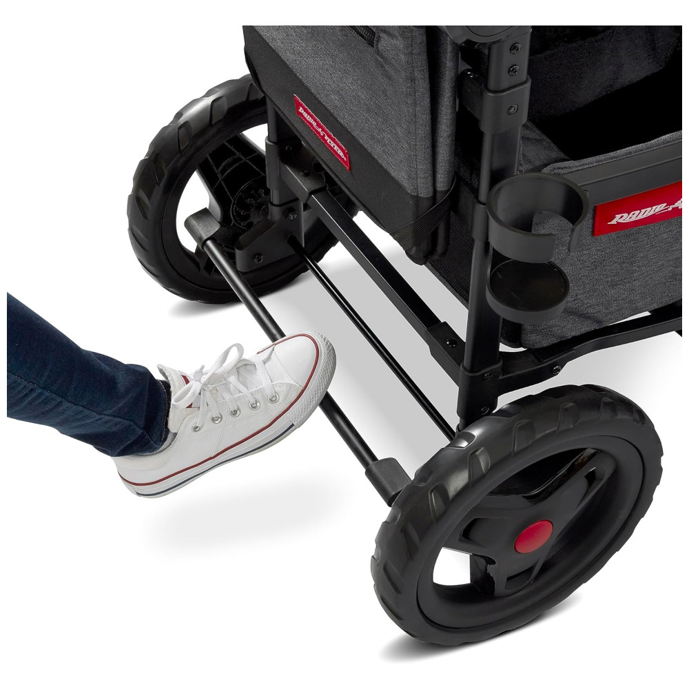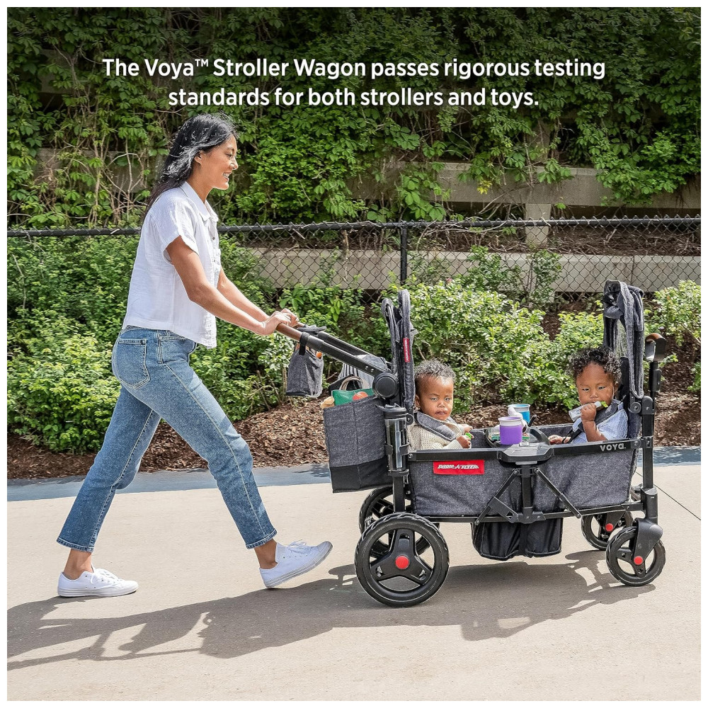 Carrinho de Passeio Vagão Duplo com 2 Assentos Altos e Dossel UV Ajustável Radio Flyer Voya Cinza