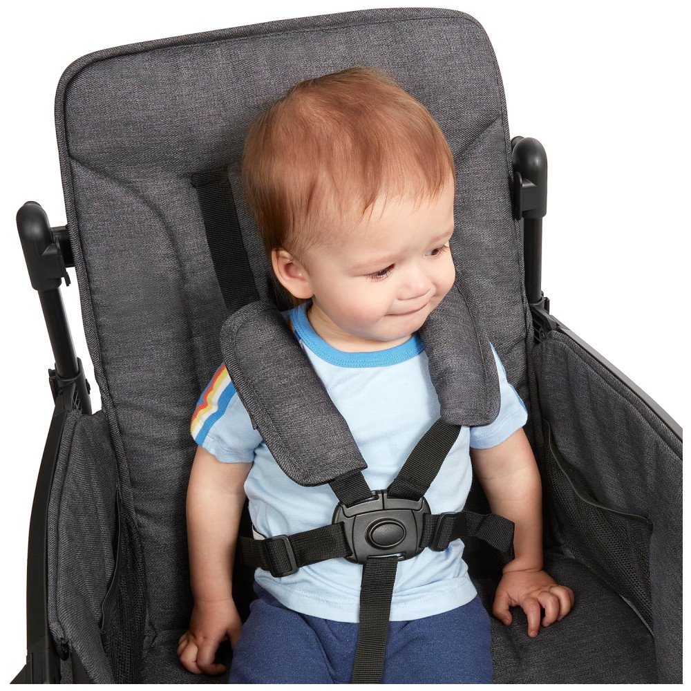 O Voya Stroller Wagon é um veículo all-in-one que oferece mobilidade premium para famílias. Com capacidade para até duas crianças, possui assentos acolchoados integrados, área para os pés e cintos de segurança de 5 pontos com ombreiras para garantir a segurança dos pequenos. Além disso, conta com uma bandeja de lanches com porta-copos, bolsos internos para armazenamento de crianças e coberturas de proteção UV removíveis para proteger do sol.