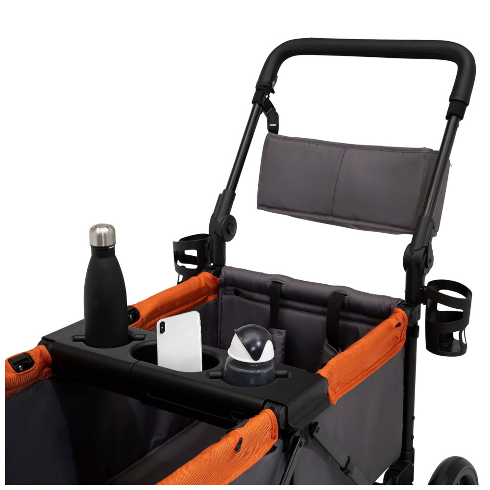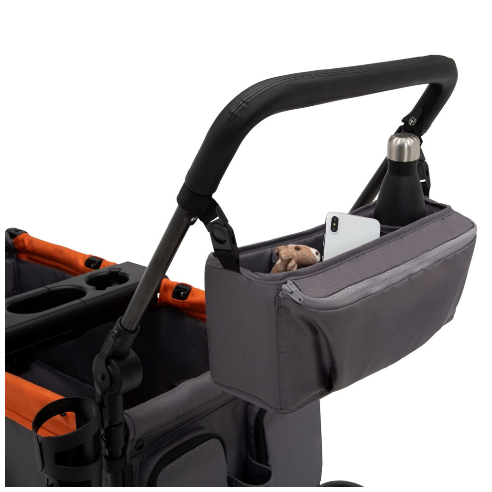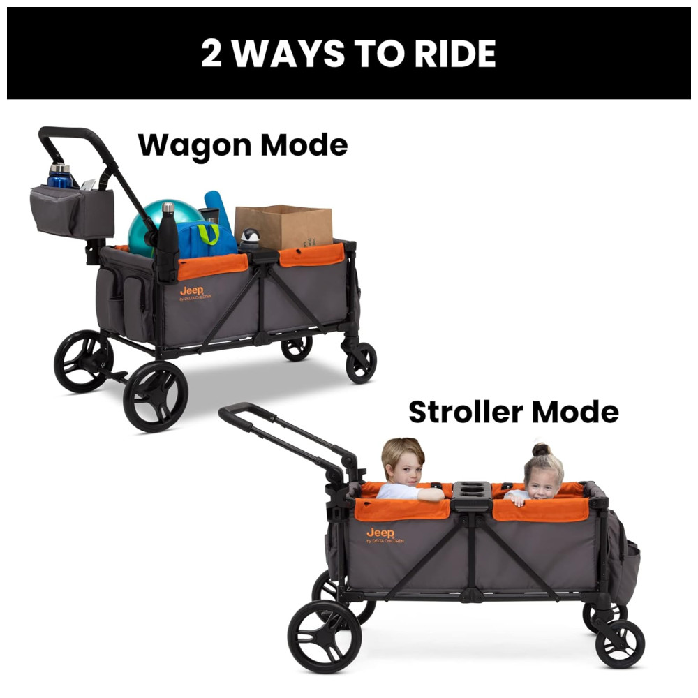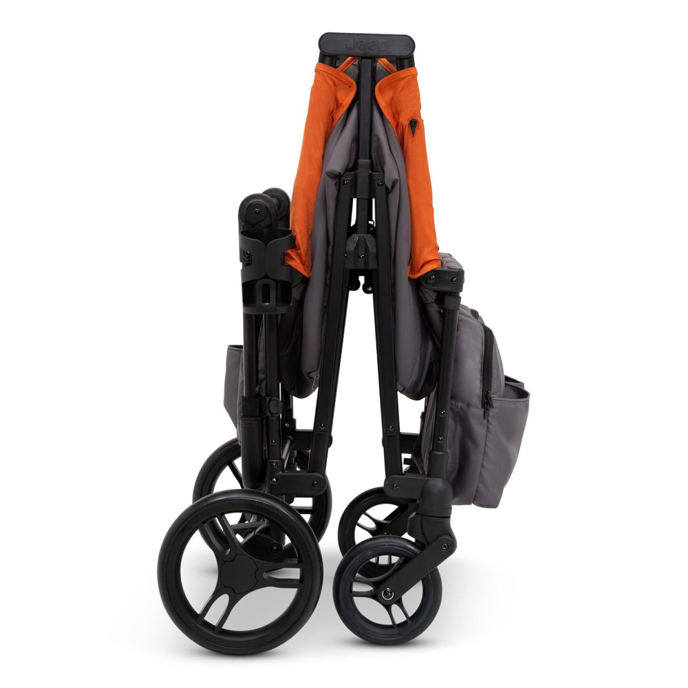 Carrinho de Passeio Vagão Duplo Multifuncional com Capota e Armazenamento Jeep Cinza e Laranja