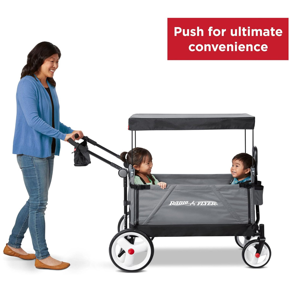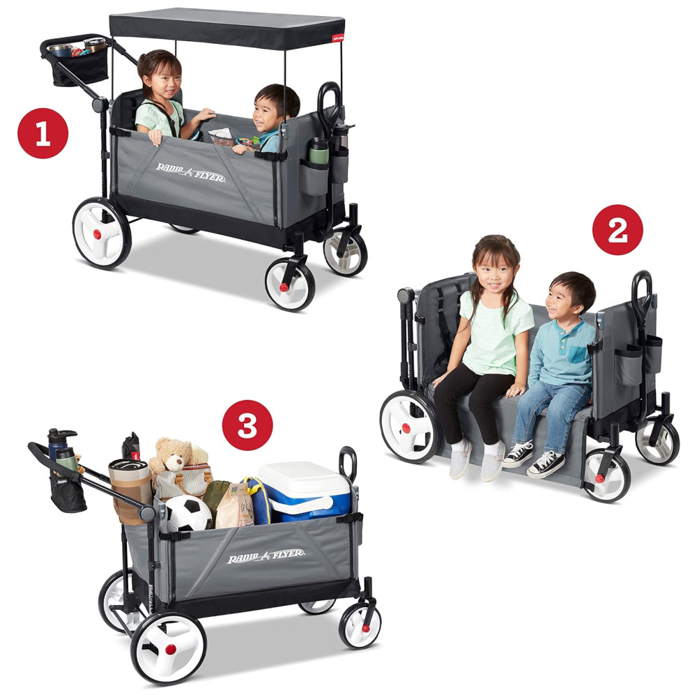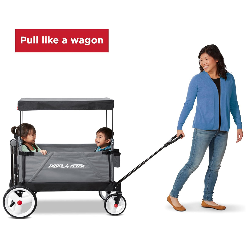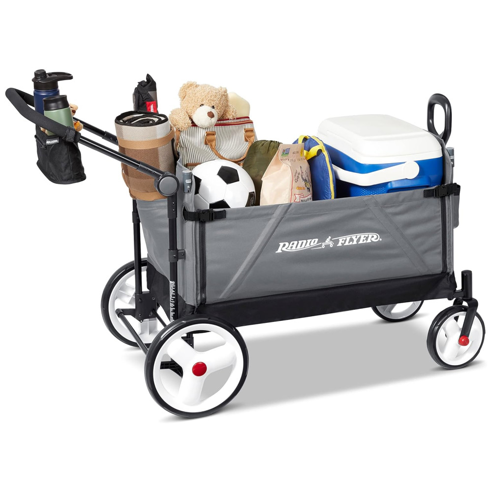Carrinho de Passeio Vagão Multifuncional com Bolsos Internos e Armazenamento Radio Flyer Cinza