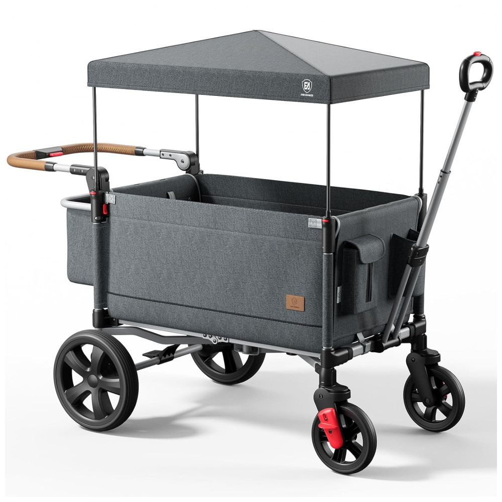 Carrinho de Passeio Vagão para 2 Crianças com Guiador Ajustável e Bolsos Ever Advanced Cinza