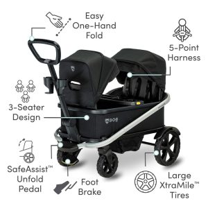 Carrinho de Passeio Vagão para 3 Crianças com Porta Copos e Cinto de Segurança BOB Gear Preto
