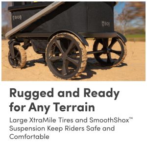 PNEUS TODO-TERRENO: O vagão infantil Renegade apresenta pneus XtraMile grandes e robustos para enfrentar qualquer terreno e aventura ao ar livre