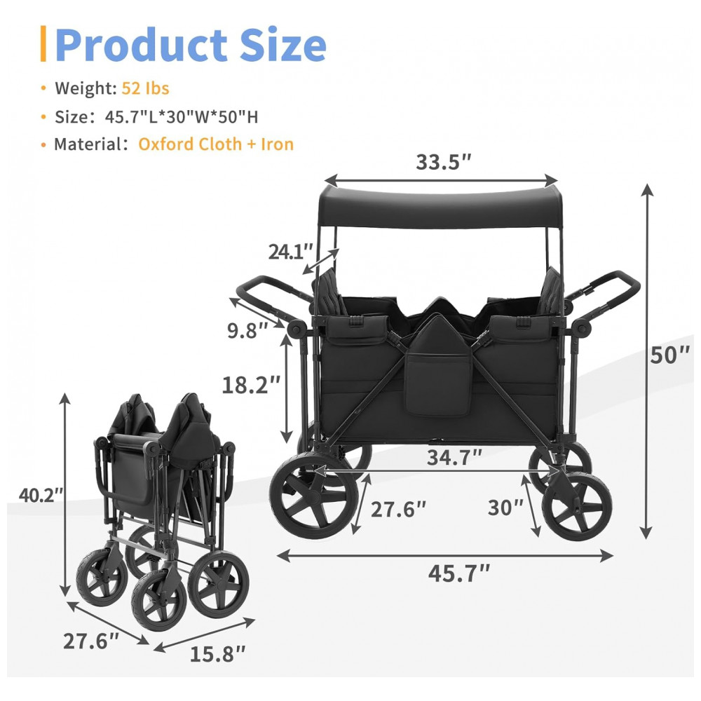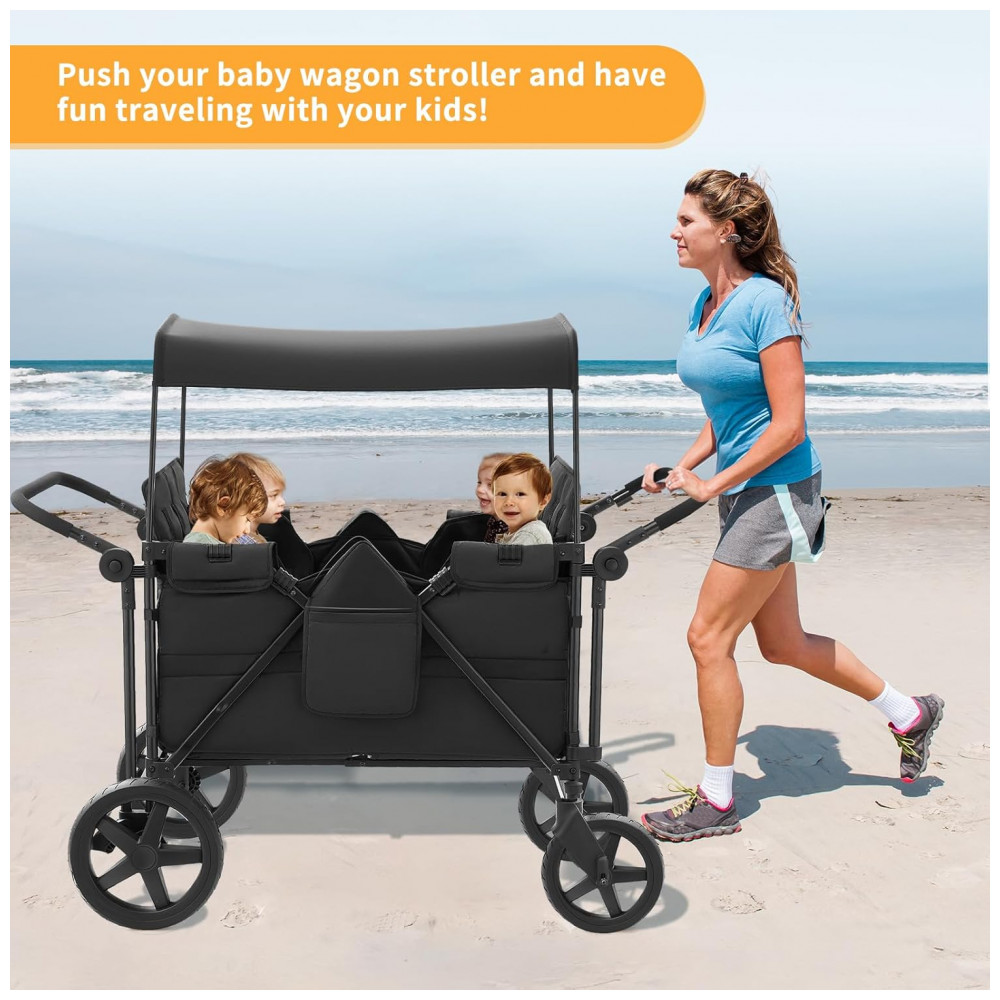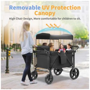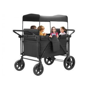 Carrinho de Passeio Vagão para 4 Crianças com Assentos Altos e Capota Ajustável Wanan Preto
