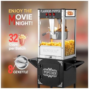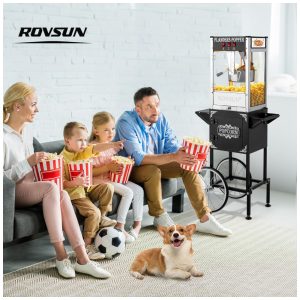 Carrinho de Pipoca Elétrico Retro Produz até 32 Xícaras de Pipoca por Vez 110V 850W ROVSUN Preto