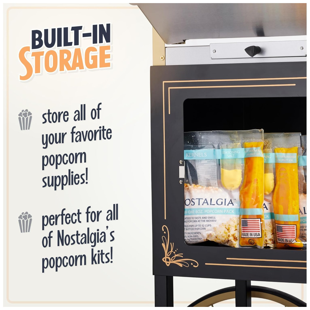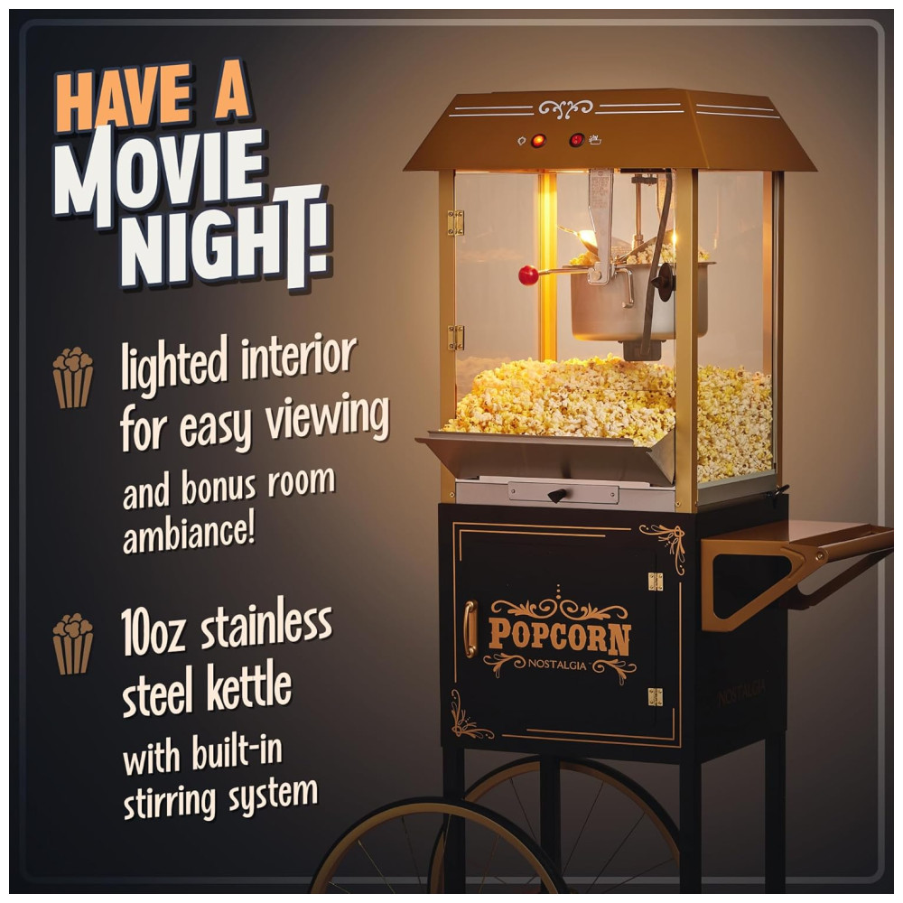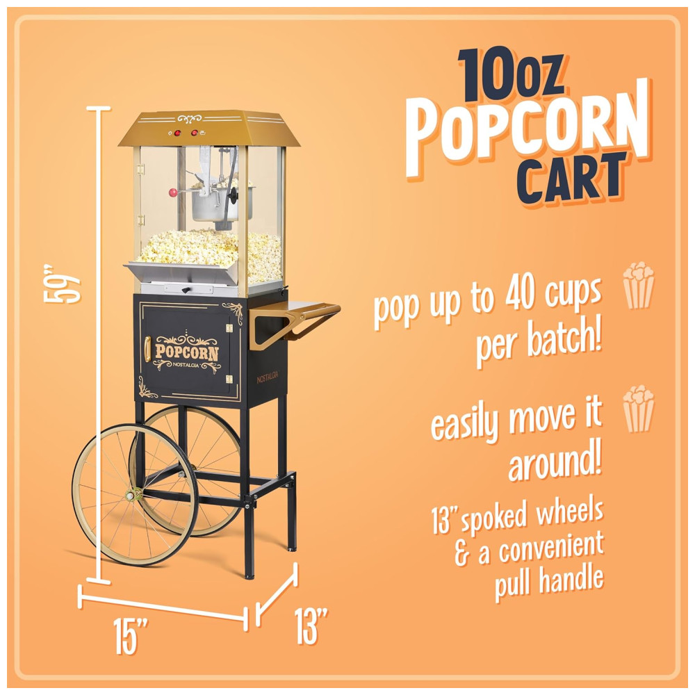 Carrinho de Pipoca Profissional com Panela de 295 mL faz Até 40 Xícaras em Minutos 110V Nostalgia Preto