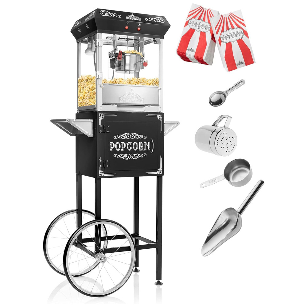 Faça pipoca gourmet estilo cinema em qualquer lugar com a máquina de pipoca estilo antigo Olde Midway 0,14 gramas e carrinho de concessão. Com um design retrô, esta pipoca com carrinho está equipada com recursos modernizados para operação fácil e conveniente e funcionalidade duradoura. A chaleira de 113g pode produzir cerca de 7,1 kg de pipoca por lote para atender grandes multidões, tornando a ideal para arrecadações de fundos para escolas e igrejas, carnavais, empresas, festas, jogos da liga infantil e do time do colégio, cinemas domésticos e muito mais.