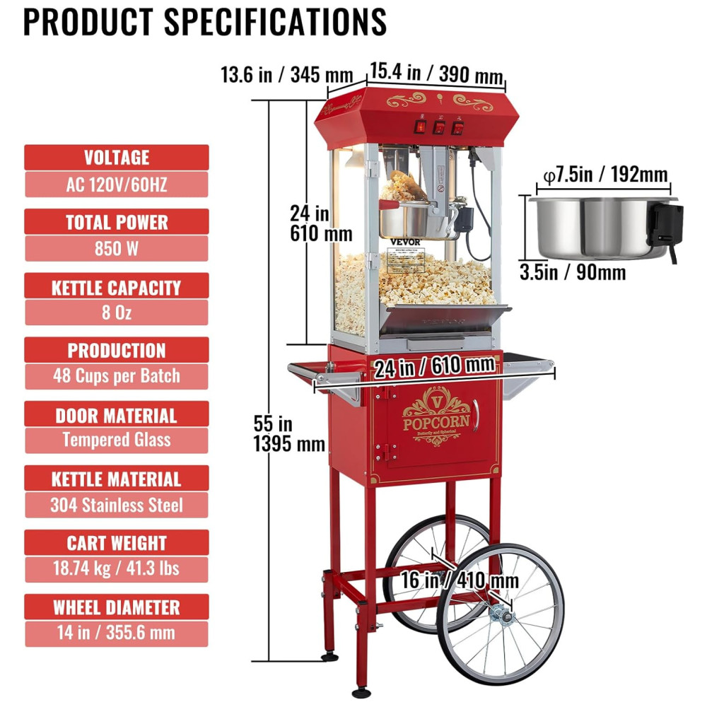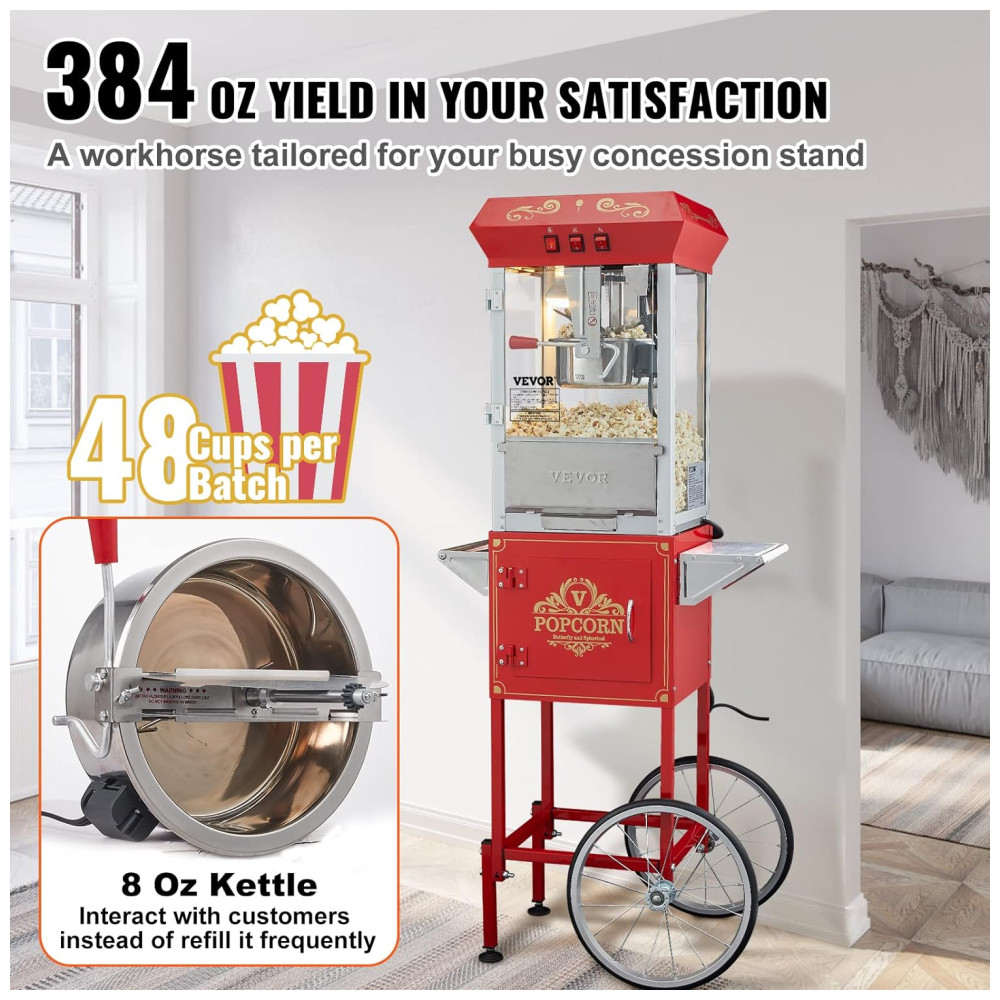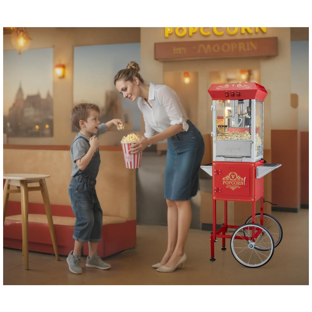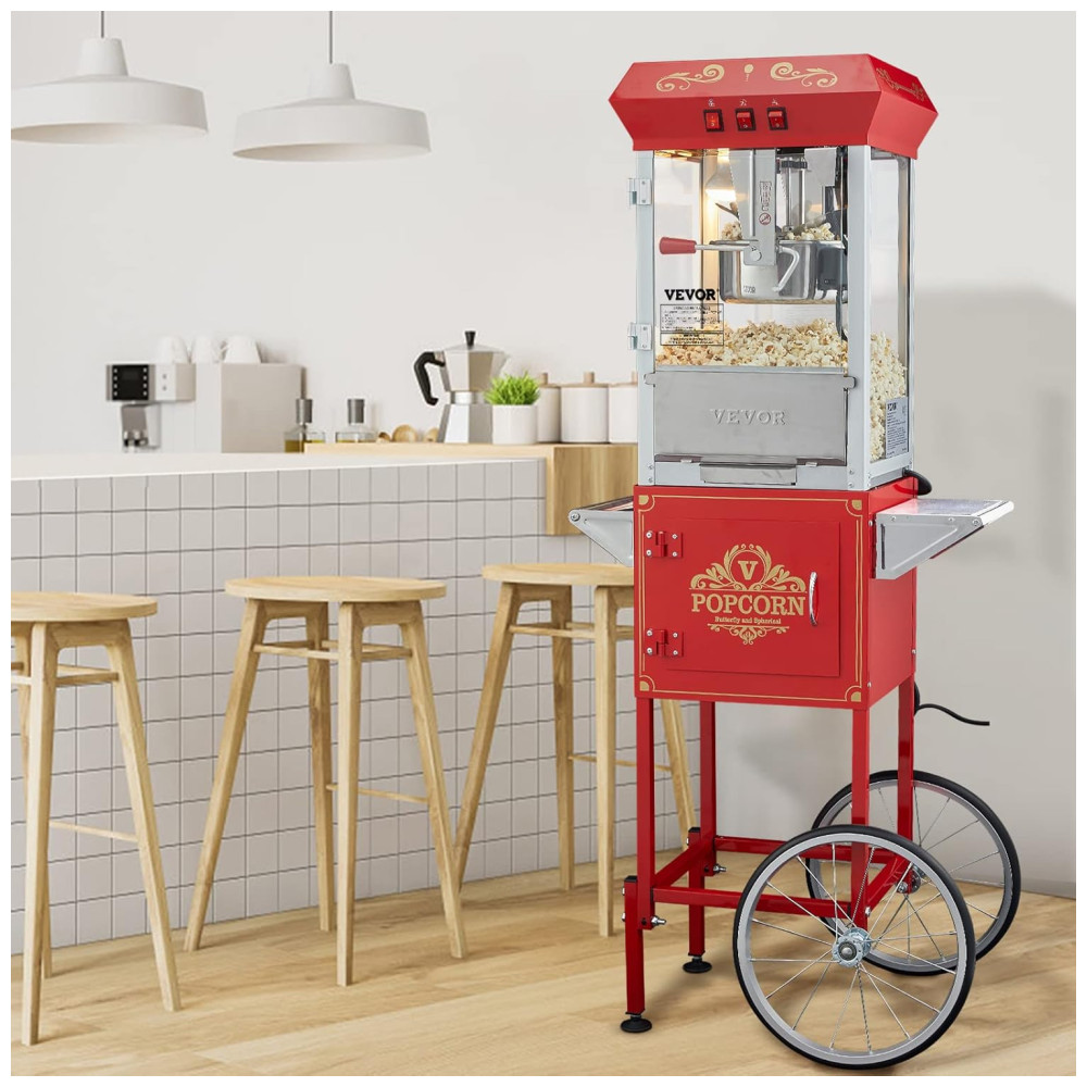 Carrinho de Pipoca Retro Profissional com Panela de 236 mL Faz até 48 Xícaras Inclui Acessórios 110V 850W Vevor Vermelho
