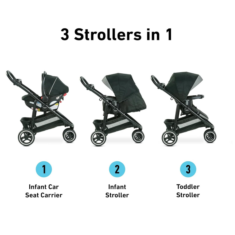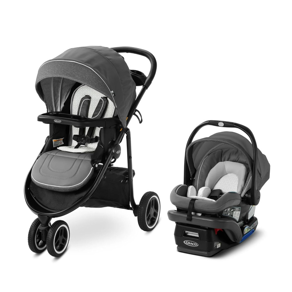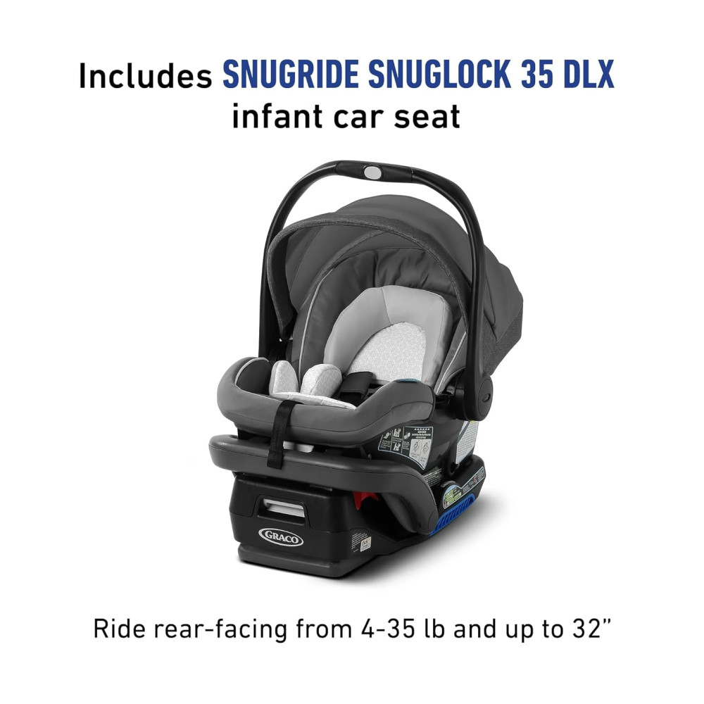 Carrinho de Viagem Graco Modes 3 Lite Platinum com Assento Reversível Dobrável com Uma Mão e Cadeirinha de Carro para Bebê SnugRide SnugLock 35 DLX
