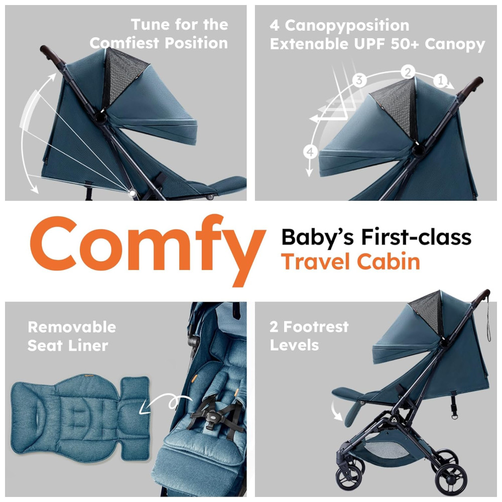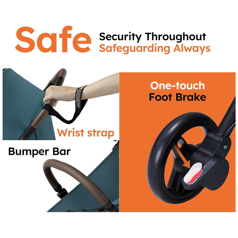 Diga adeus aos carrinhos volumosos que tornam as viagens uma dor de cabeça. O nosso carrinho de bebê possui um design compacto que se dobra facilmente em um tamanho reduzido. Com apenas 5,2 kg, graças ao seu avançado quadro de fibra de carbono, garante uma experiência livre de problemas onde quer que você vá. Este material inovador não só oferece durabilidade excepcional, mas também permite uma construção incrivelmente leve, facilitando o armazenamento em porta-malas ou compartimentos superiores em aviões. Adeus aos mecanismos de dobragem complexos. Nosso carrinho de viagem leve apresenta um sistema de dobragem e desdobramento fácil de usar que pode ser dominado em segundos. Isso torna a transição entre passear e guardar um processo contínuo, permitindo que você se concentre em criar memórias com seus entes queridos. A prioridade é o conforto e a segurança do seu filho. O Carrinho Ultra Air possui um toldo protetor UV que protege seu pequeno dos raios solares nocivos, proporcionando um refúgio fresco e sombreado para eles relaxarem. O toldo ajustável UPF 50 pode ser facilmente posicionado para atender a diferentes ângulos de sol, permitindo criar o local sombreado perfeito enquanto você explora locais ao ar livre. Este carrinho compacto para crianças pequenas vem com amplas opções de armazenamento, incluindo uma cesta espaçosa sob o assento que pode acomodar facilmente bolsas de fraldas, brinquedos, lanches e muito mais. Além disso, inclui um organizador universal com porta-copos isolado, bolso removível para celular e alça de ombro. Mantenha as mãos livres e as necessidades do seu filho ao alcance enquanto embarca em suas aventuras. Priorizamos a segurança do seu filho. Nosso carrinho infantil possui um arnês de 5 pontos e sistema de freio acionado pelo pé para máxima segurança. Adequado para bebês a partir de 6 meses até 22,7 kg e altura máxima de 100 cm. O Ultra Air atende ou excede os mais altos padrões de segurança estabelecidos pela CPSC e ASTM.