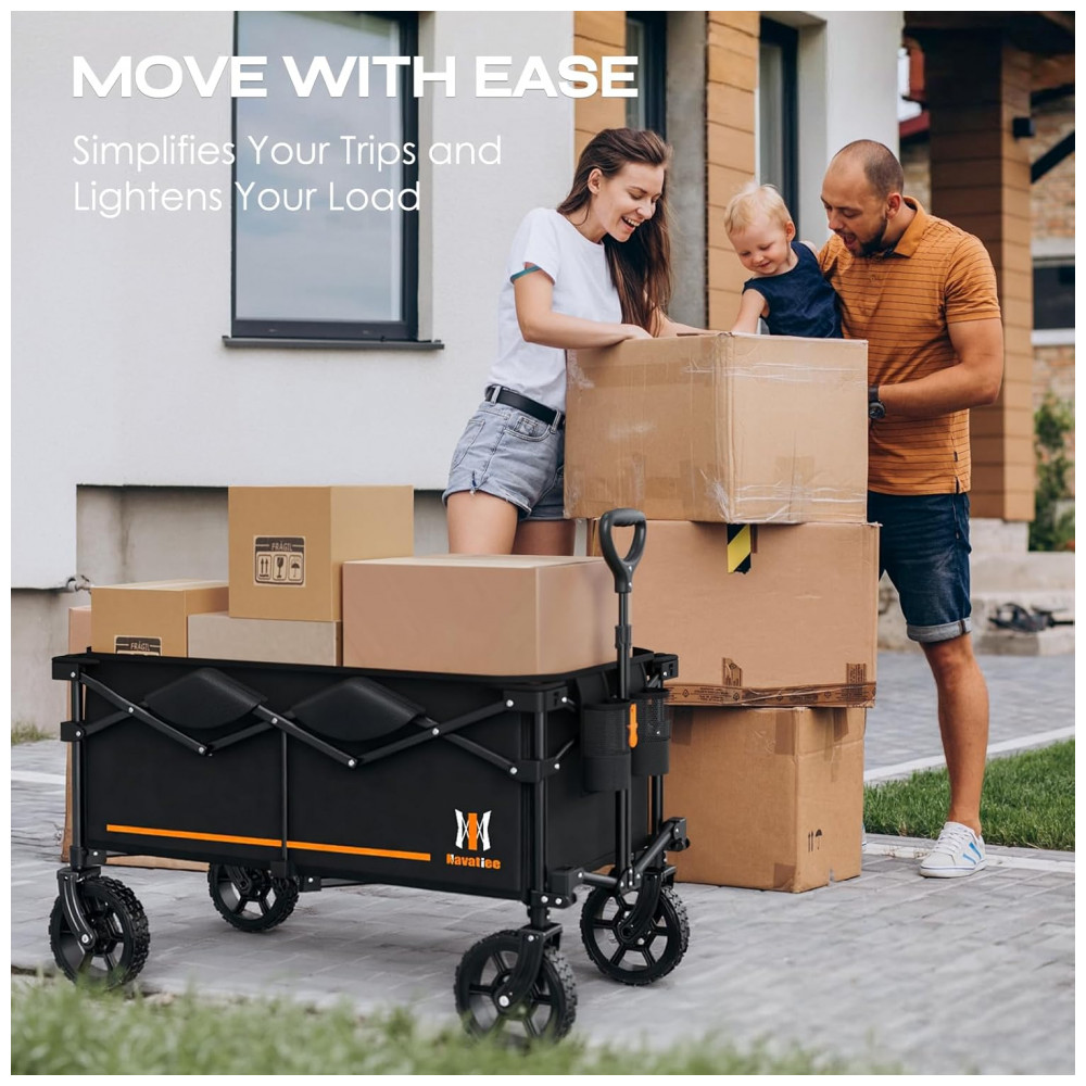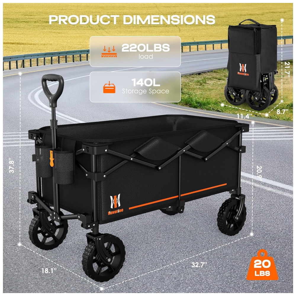 Ajudante perfeito para todos A combinação de peso leve e uma estrutura dobrável torna os vagões dobráveis especialmente úteis para o uso diário, incluindo entrar e sair de um carro ou entrar e sair do transporte público. Eu recomendo escolher Navatiee se você estiver procurando por um vagão altamente funcional com preços razoáveis