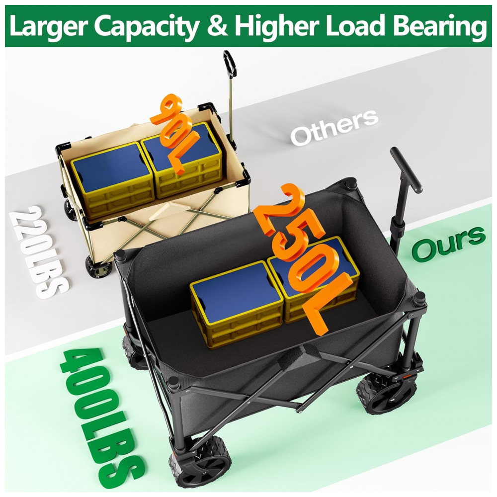 Carrinho Dobrável para Camping e Jardim Capacidade 80kg com Rodas 360 BEAU JARDIN Preto