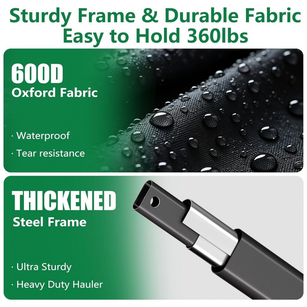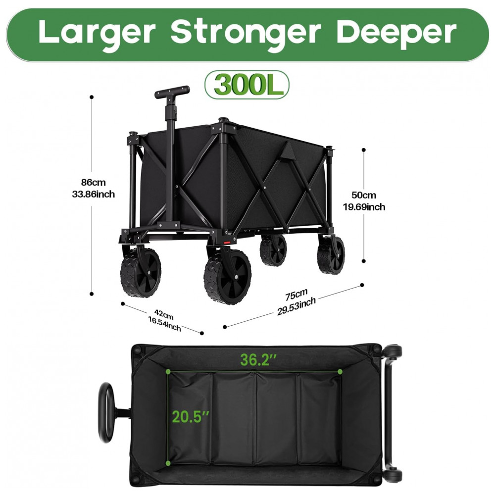 CAPACIDADE DE PESO A roda do vagão de praia de lona tem de largura e de diâmetro, a estrutura resistente dobrável do vagão utilitário. O espaçamento das rodas pode ser ajustado aleatoriamente para se adequar a diferentes superfícies de estrada. O material de tecido do carrinho de vagões dobrável 600D, e é removível para facilitar a lavagem das mãos ou da mangueira, o material da ção do carrinho de camping é de aço, o carrinho de vagão utilitário externo resistente, a estrutura de aço preto é mais estável.