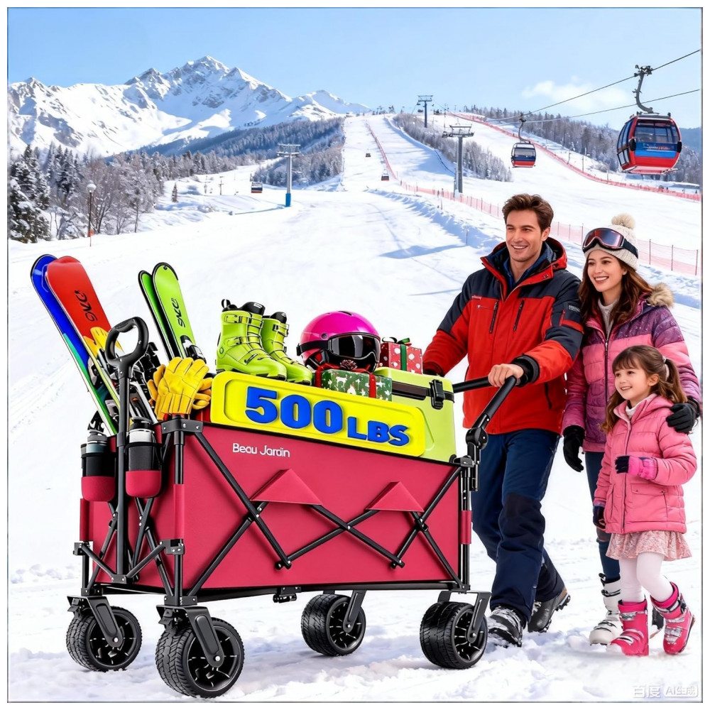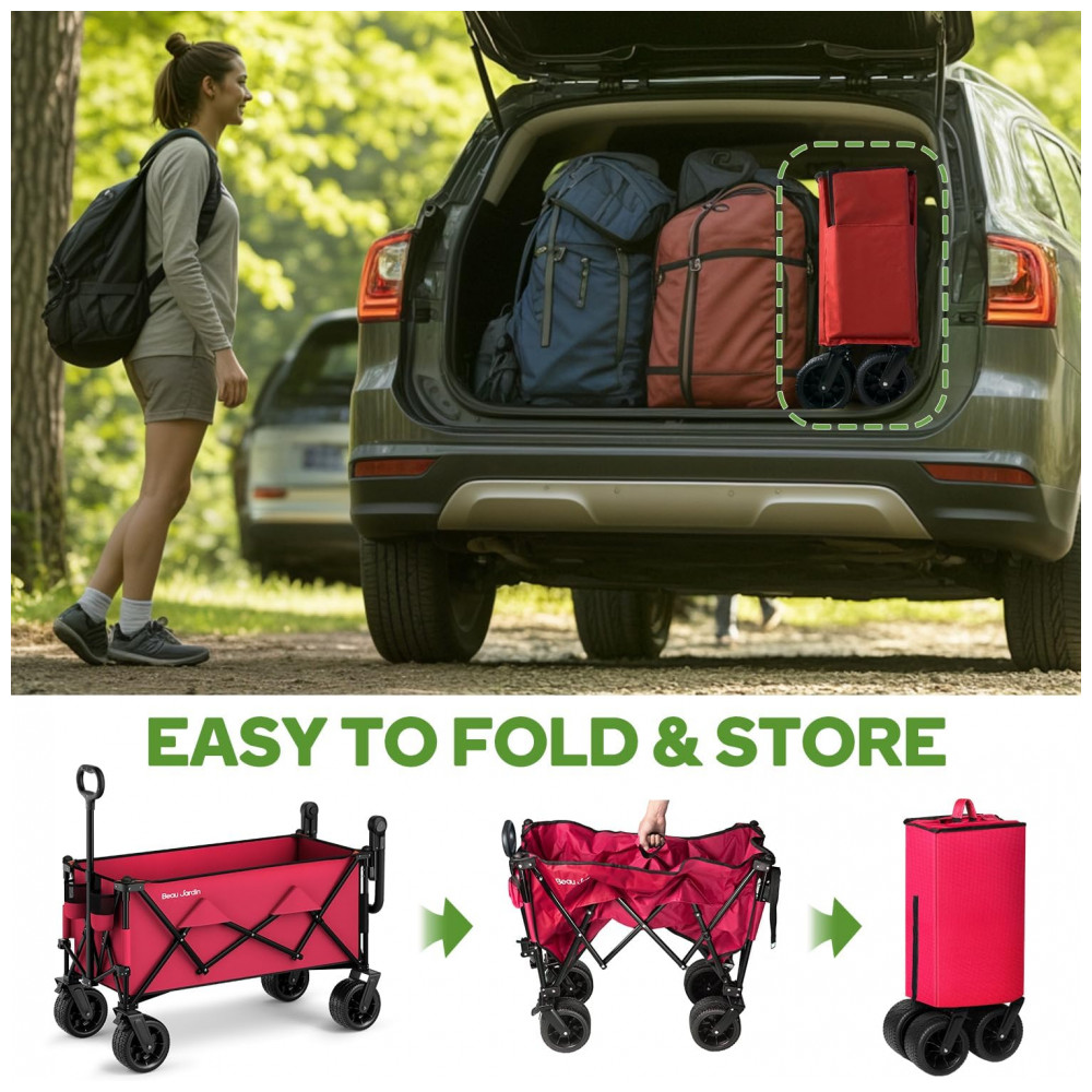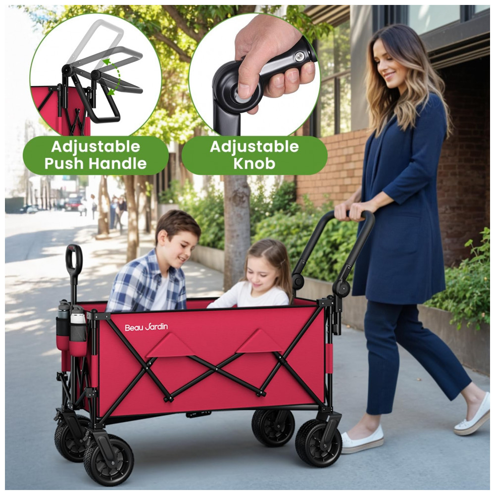 Carrinho Dobrável para Camping e Jardim com Rodas para todos os Terrenos Capacidade 136kg BEAU JARDIN Vermelho