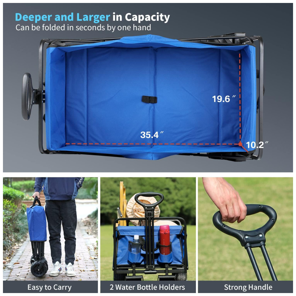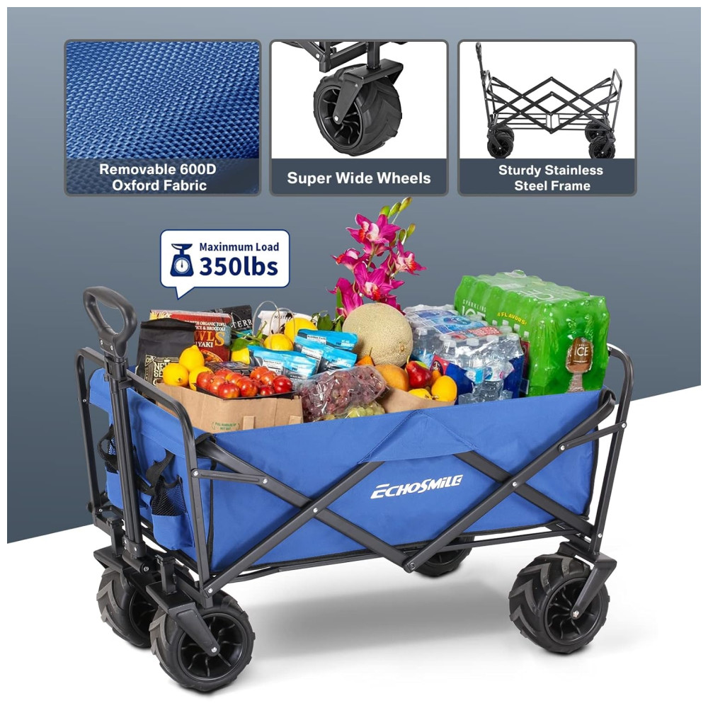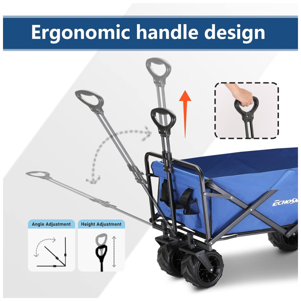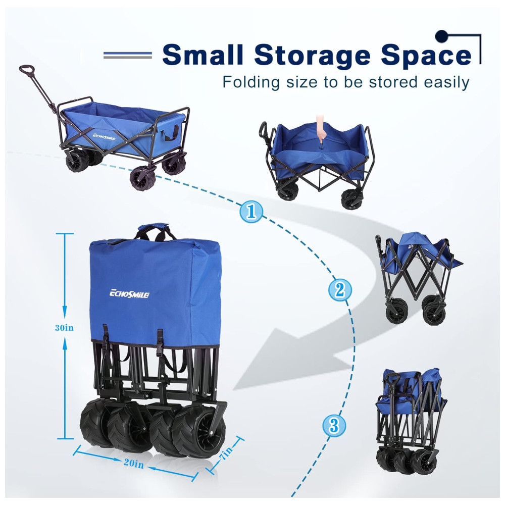 Carrinho Dobrável para Camping e Jardim com Rodas para todos os Terrenos Capacidade 160kg EchoSmile Azul
