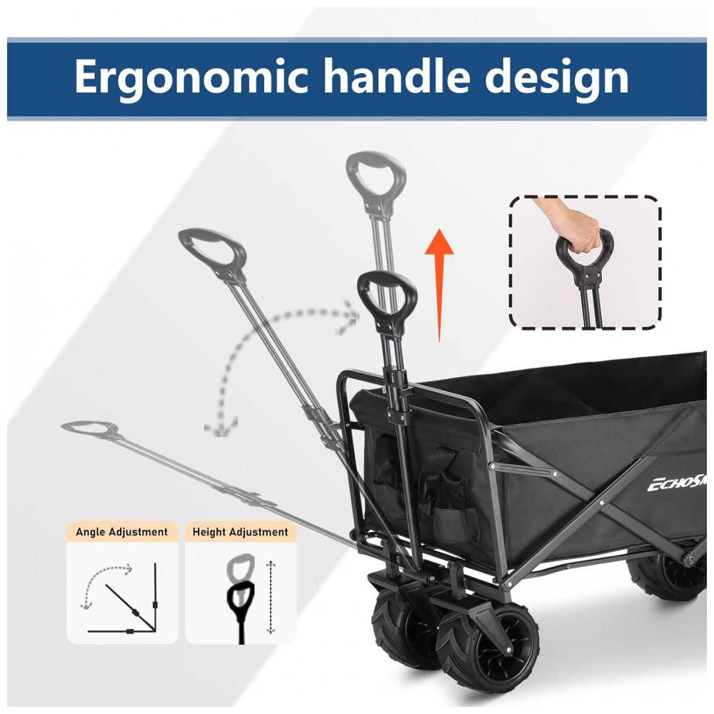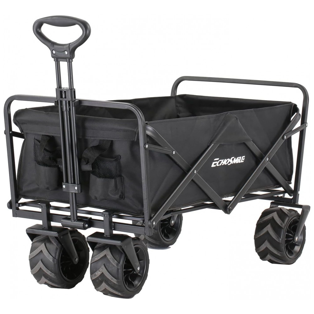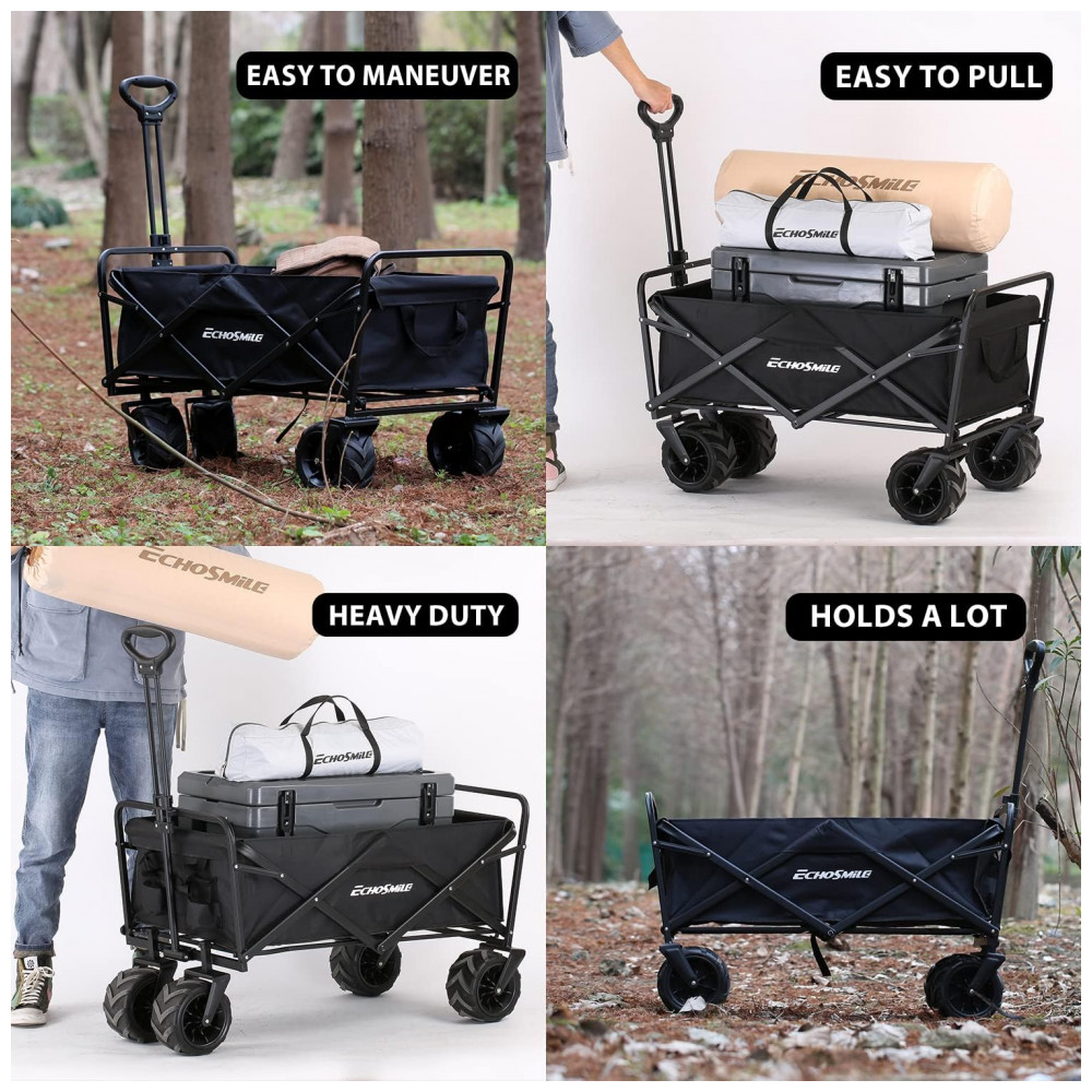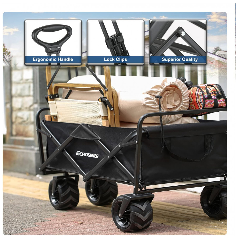 Carrinho Dobrável para Camping e Jardim com Rodas para todos os Terrenos Capacidade 160kg EchoSmile Preto