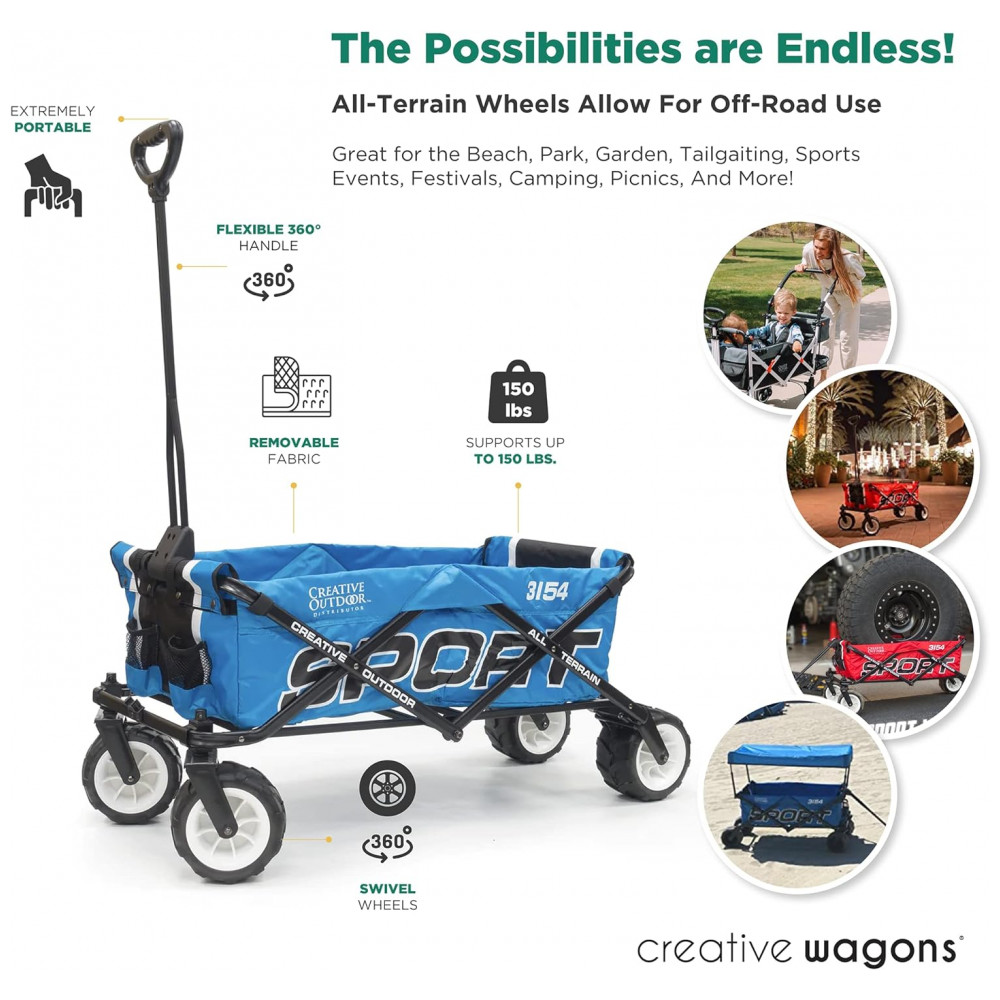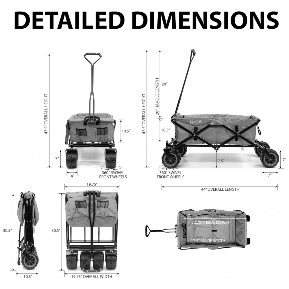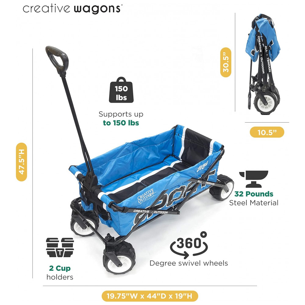 CONSTRUÍDO RESISTENTE O vagão dobrável dobrável para todos os terrenos da Creative Outdoor Distributor é construído com uma estrutura de aço e tecido de mistura de denier durável pode suportar até 70 kg.