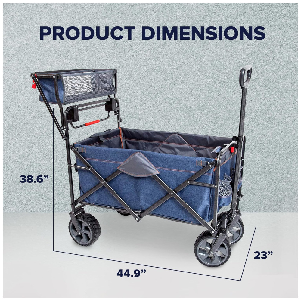 Rodas extragrandes para transportar equipamentos para a praia, eventos esportivos ao ar livre, shows, piqueniques no parque e em casa. Ou usá lo como um carrinho de compras em locais onde os carrinhos de compras não estão disponíveis, como o dos fazendeiros, lojas e muito mais.