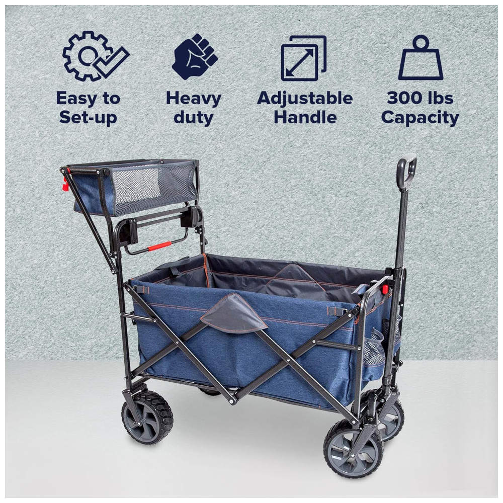 Carrinho Dobrável para Camping e Jardim com Rodas para todos os Terrenos e Compartimento Lateral Capacidade 136kg Mac Sports WPP100 Azul