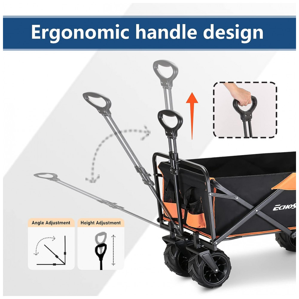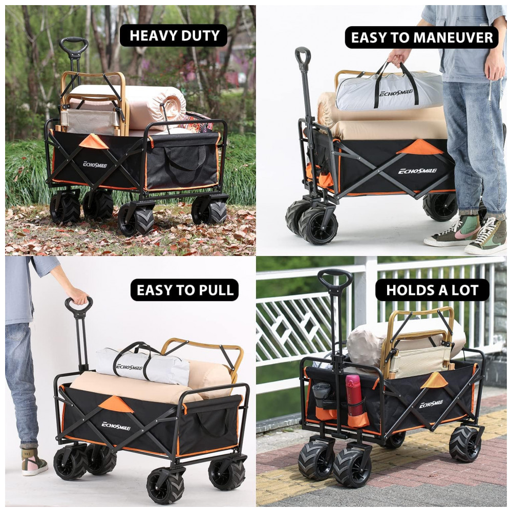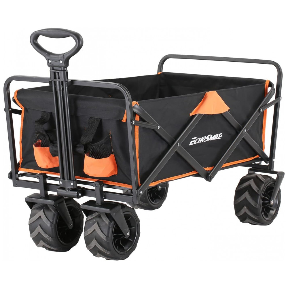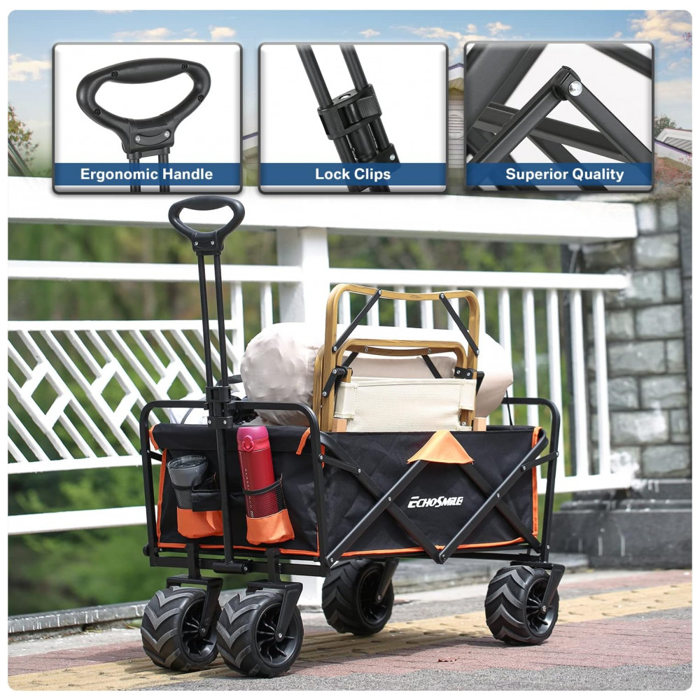 Carrinho Dobrável para Camping e Jardim com Rodas tradicionais para todos os Terrenos Capacidade 160kg EchoSmile Preto e Laranja