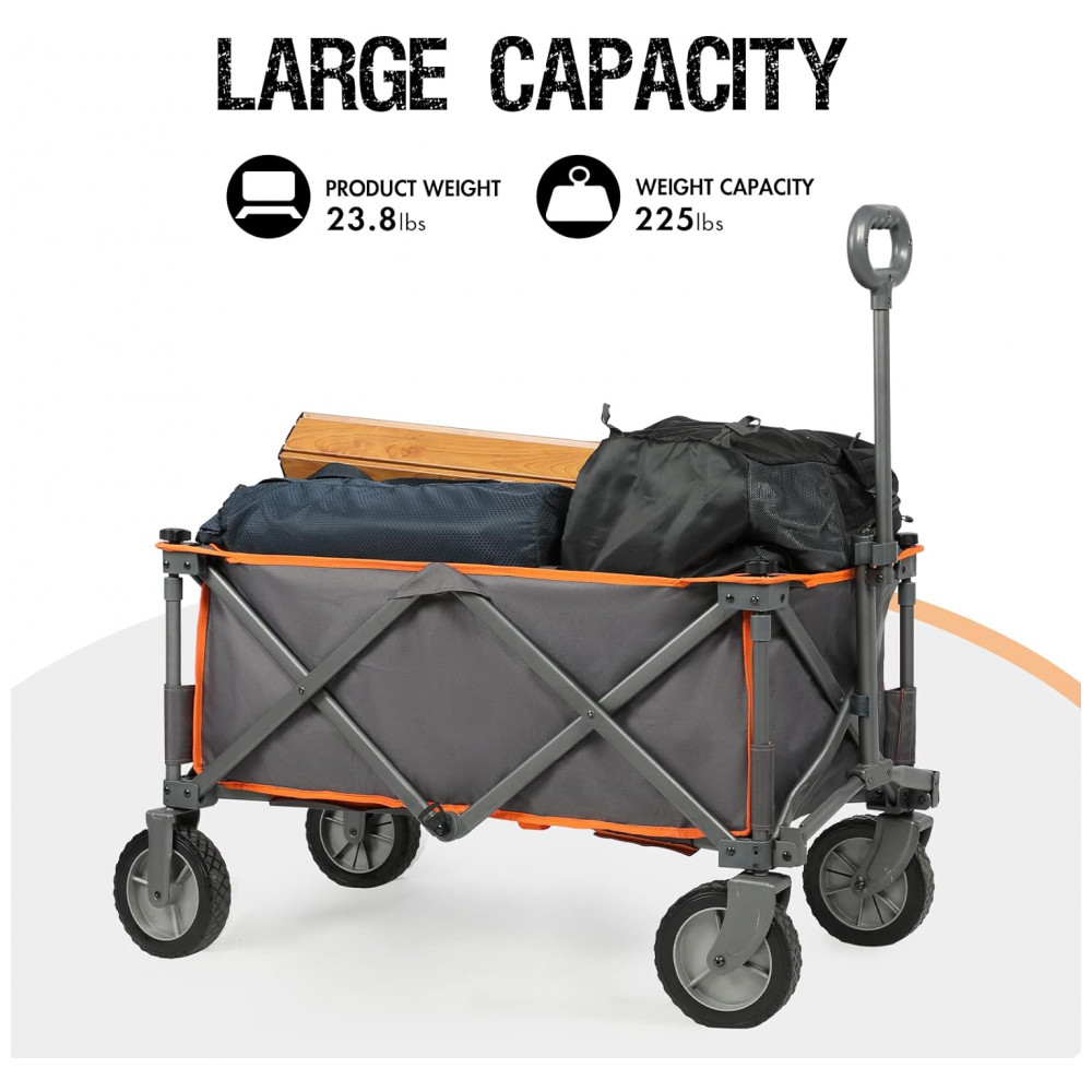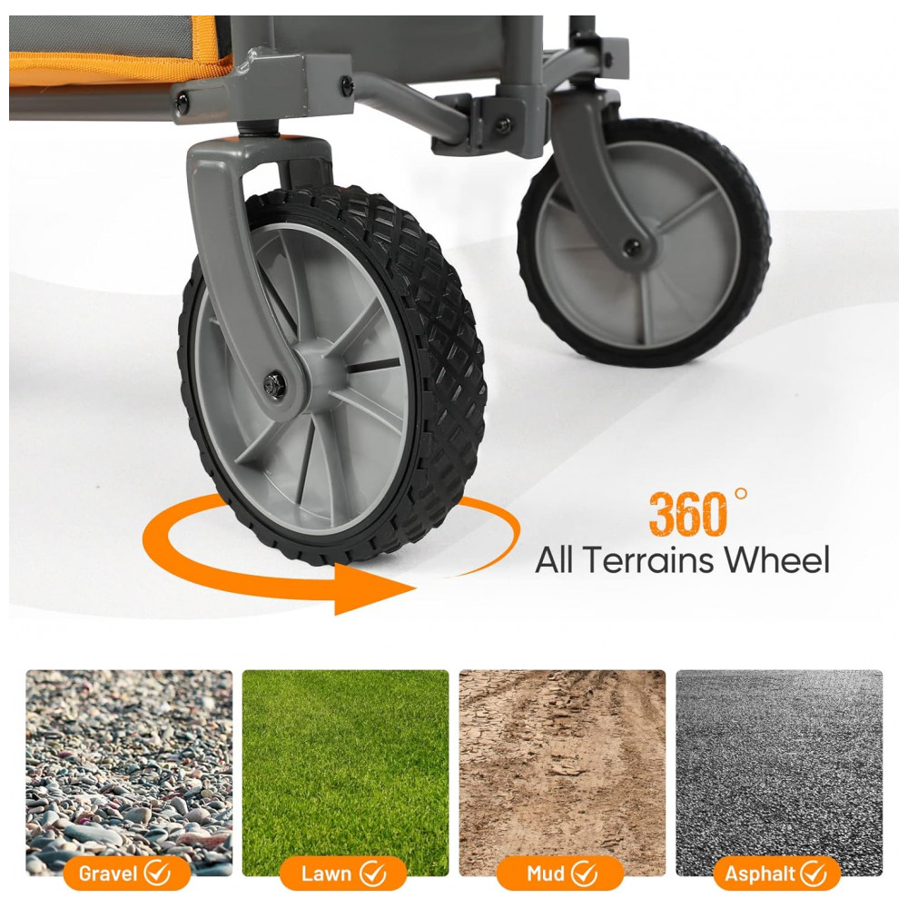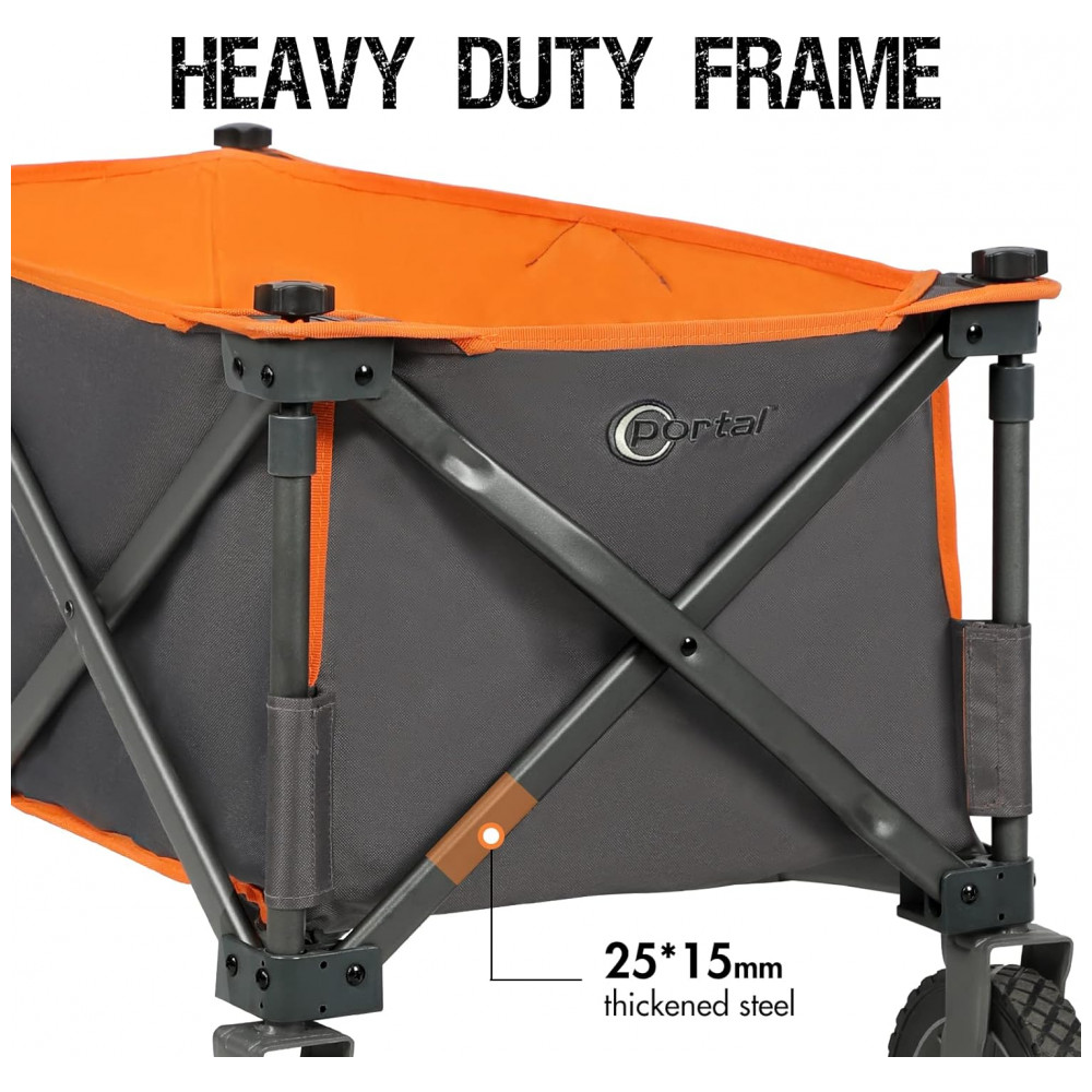 Carrinho Dobrável para Camping e Jardim com Tecido Removível Capacidade 100kg PORTAL Cinza e Laranja