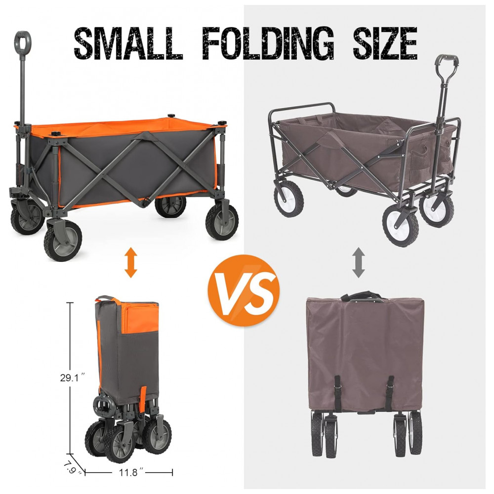 CONFIGURAÇÃO RÁPIDA E DOBRA Não é necessária montagem. Configuração rápida e fácil em segundos, pressionando a parte inferior. Este vagão utilitário pode ser dobrado de forma compacta e zenado facilmente em seu porta malas, garagem ou armário, garantindo fácil transporte