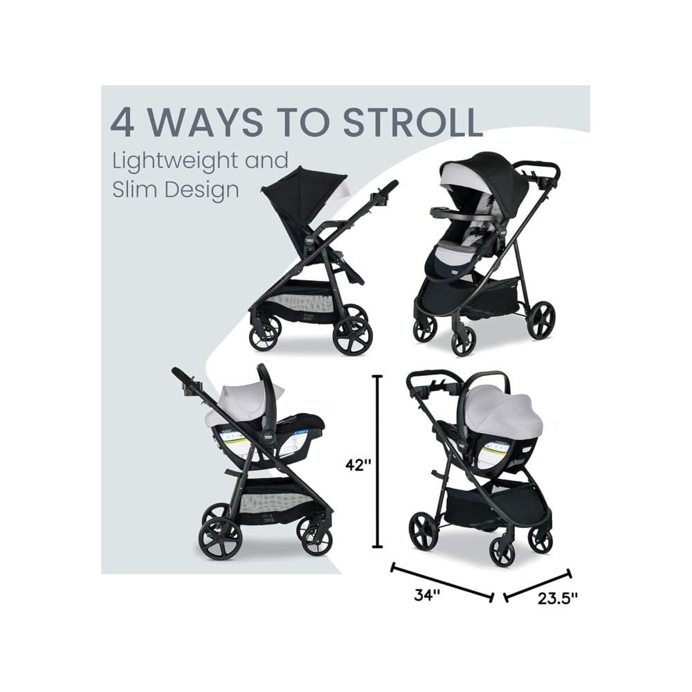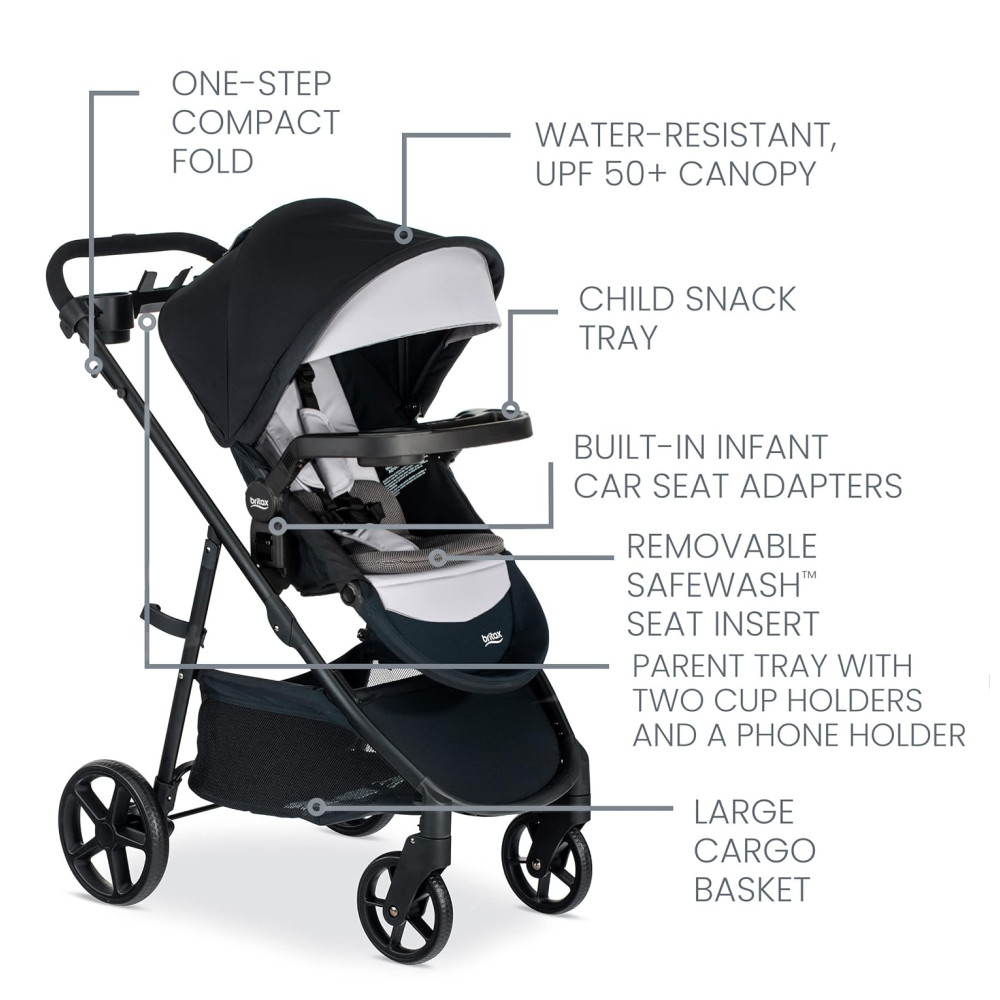 Carrinho e Assento de Carro para Bebê Britax Willow Brook S com Base Alpine e Tecnologia ClickTight Capa e Inserto SafeWash – Viagem Segura
